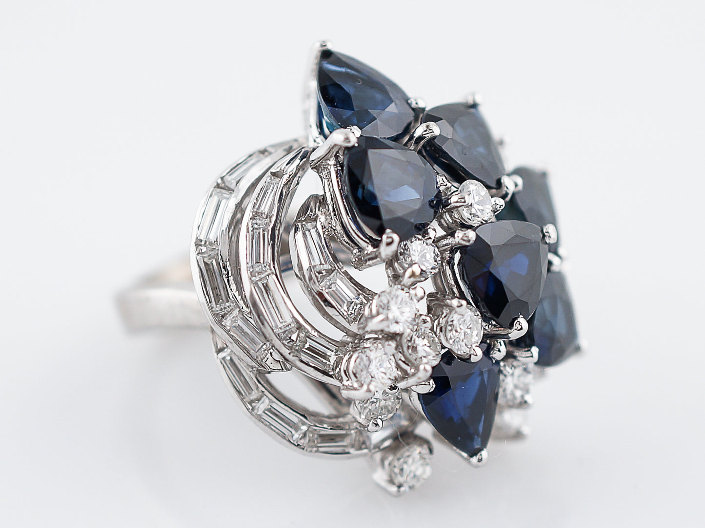 Cocktail Ring Modern 2.96 Baguette & Round Brilliant Cut Diamonds & 6.63 Pear Cut Sapphire in 18k White Gold