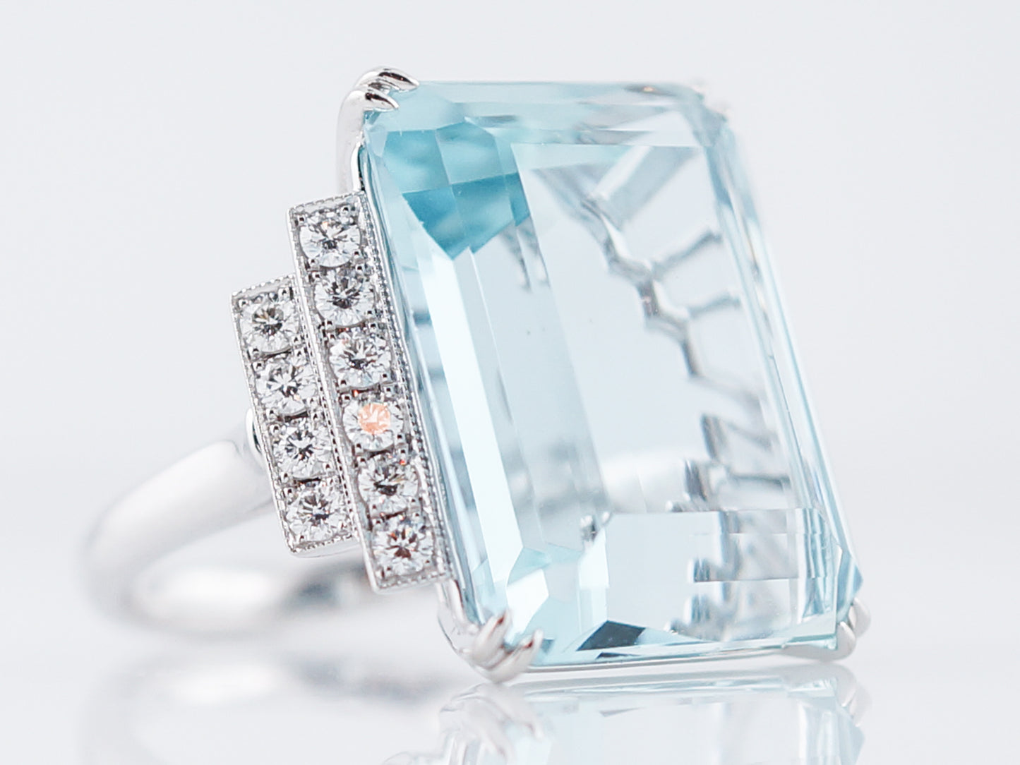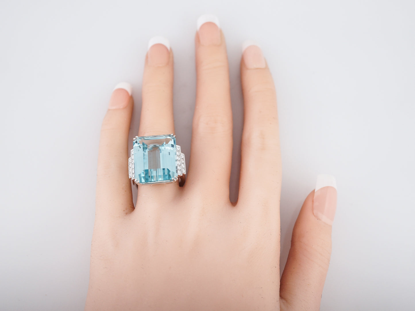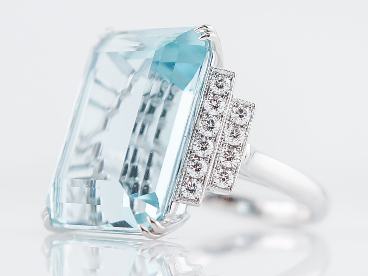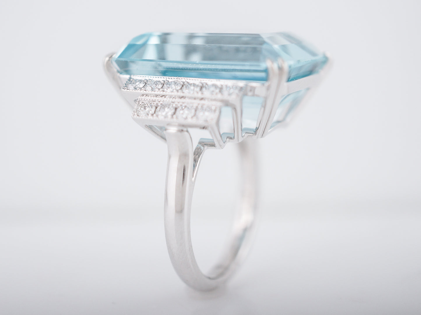 Cocktail Ring Modern 22.68 Emerald Cut Aquamarine in Platinum