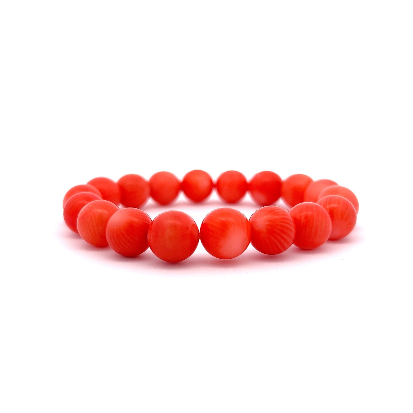 This classic mid-century bracelet offers a timeless look with a vintage twist. Hand-crafted with a stretchy beaded design, this bracelet is made with beautiful coral beads. Each unique bead is interspersed with coral and for an elegant, one-of-a-kind look. Perfect for any special occasion, this bracelet can easily be worn on its own or layered with other accessories for a unique style. Whether you're looking for a special gift for a loved one or a timeless accessory for yourself, this bracelet is sure to bring timeless elegance to any ensemble.
