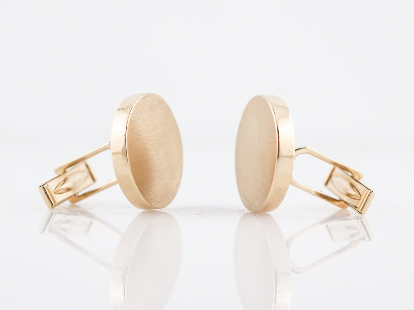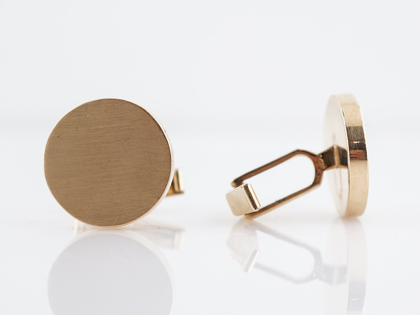 This pair of sleek, 14 karat yellow gold cufflinks are a classic! Measuring 18.00 mm in diameter and with a crisp, high polish, these are the perfect staple pair of cufflinks.