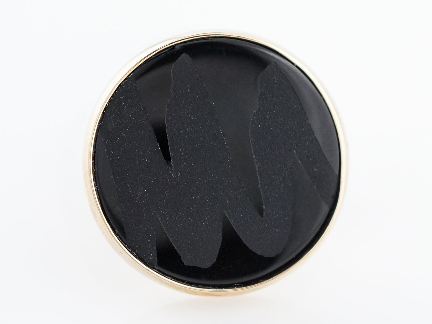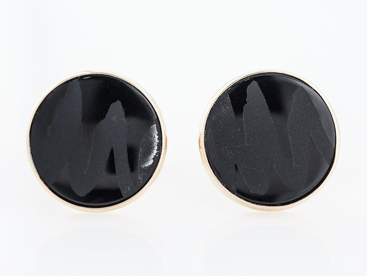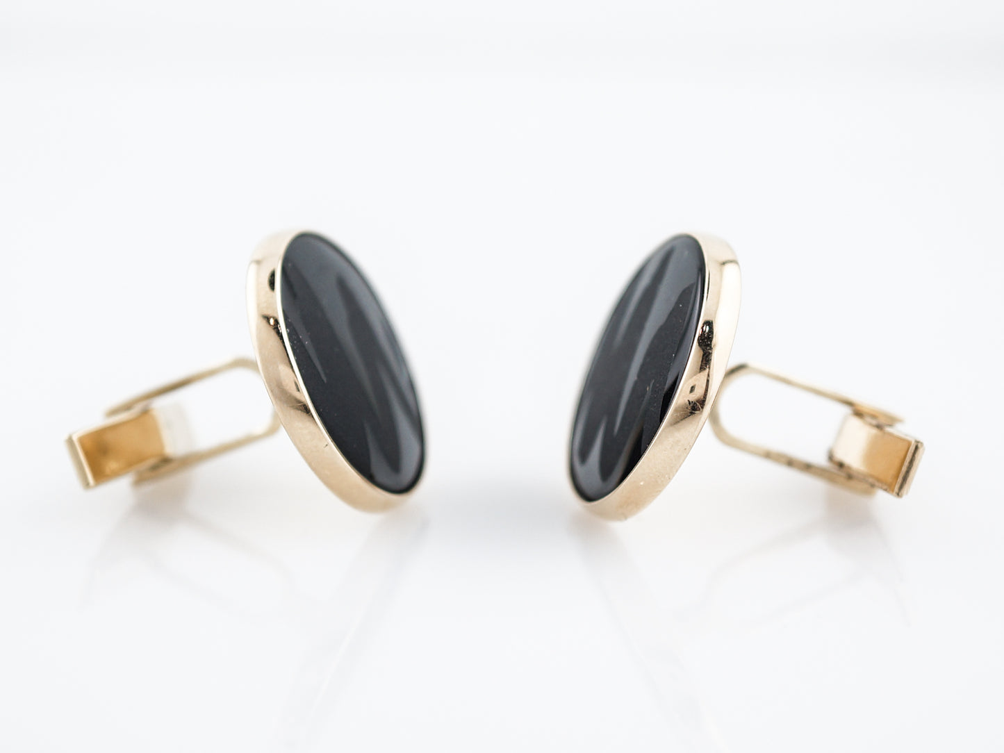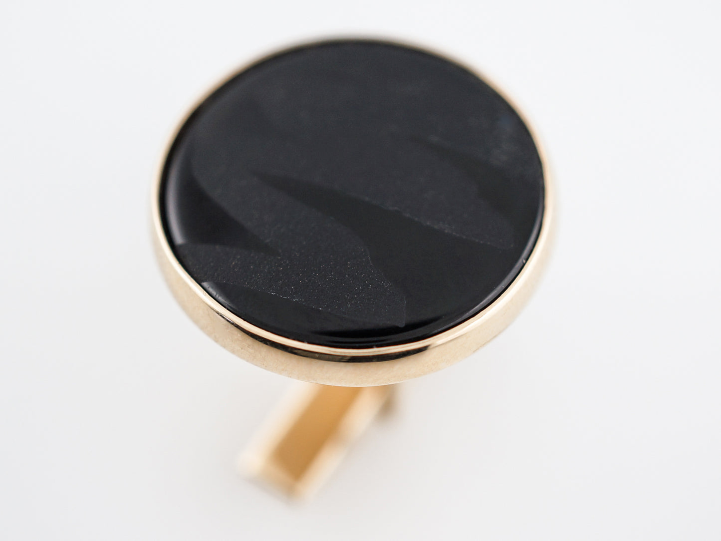 Cufflinks Modern Round Cabochon Cut Onyx in 14k Yellow Gold