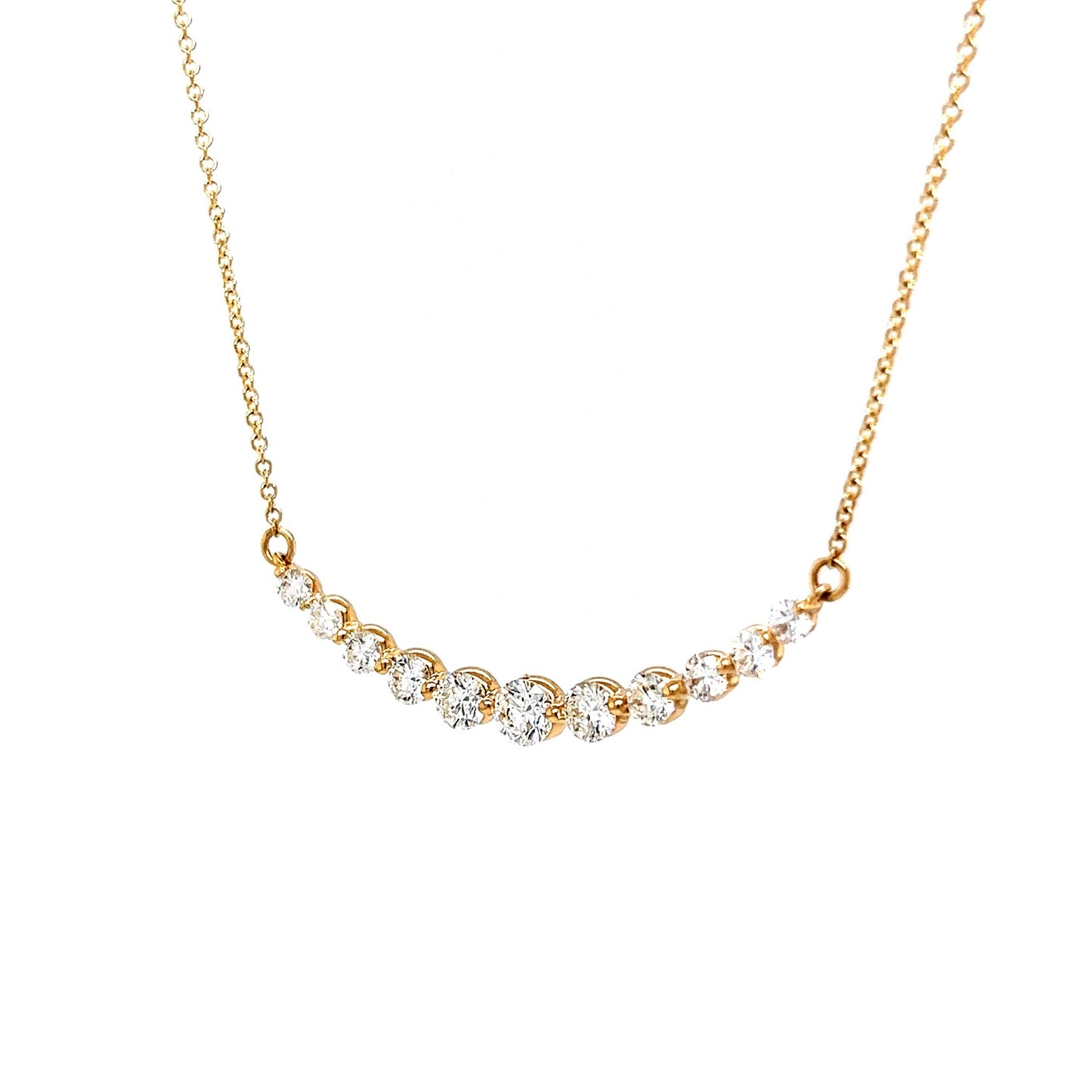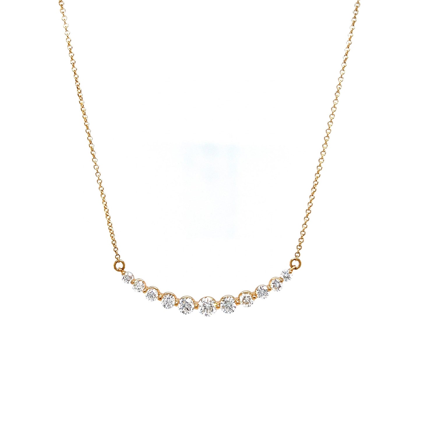 Curved Round Brilliant Diamond Necklace in 14k Yellow Gold