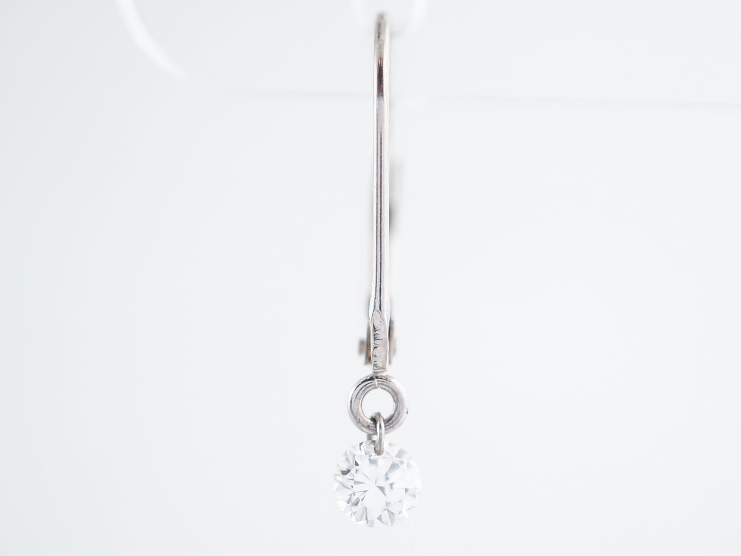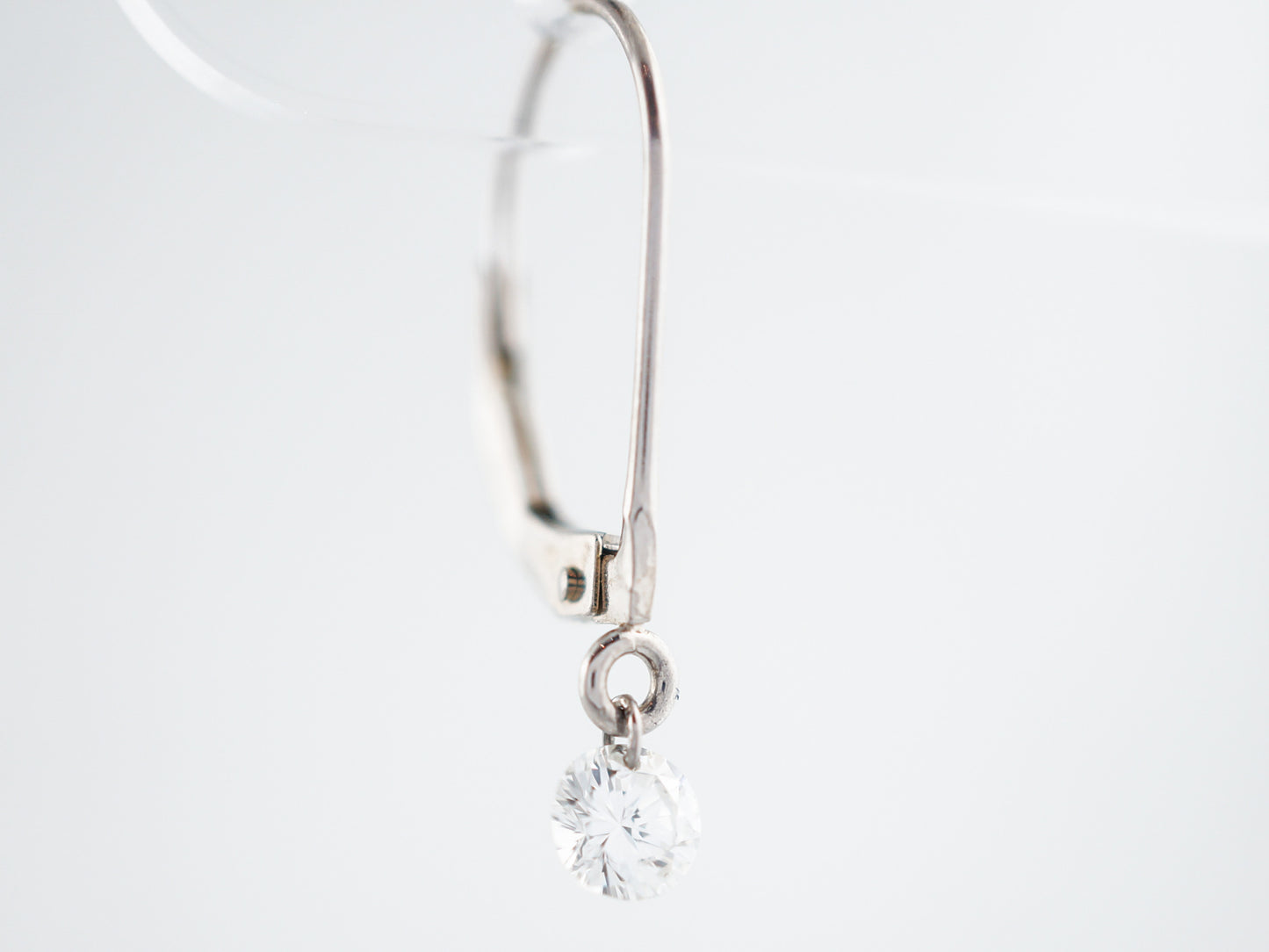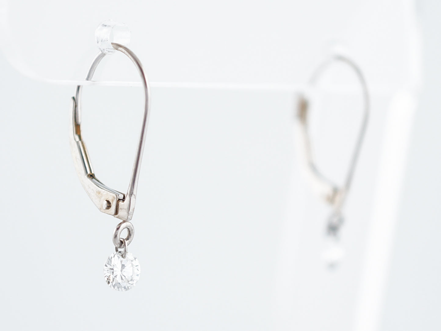 These modern dangle drop earrings are perfect for every day wear. A .20 carat round brilliant cut diamond dangles from 14k white gold lever backs. Each diamond has enough freedom to move, which creates a lovely sparkle that catches the attention. Simple and elegant at the same time.
