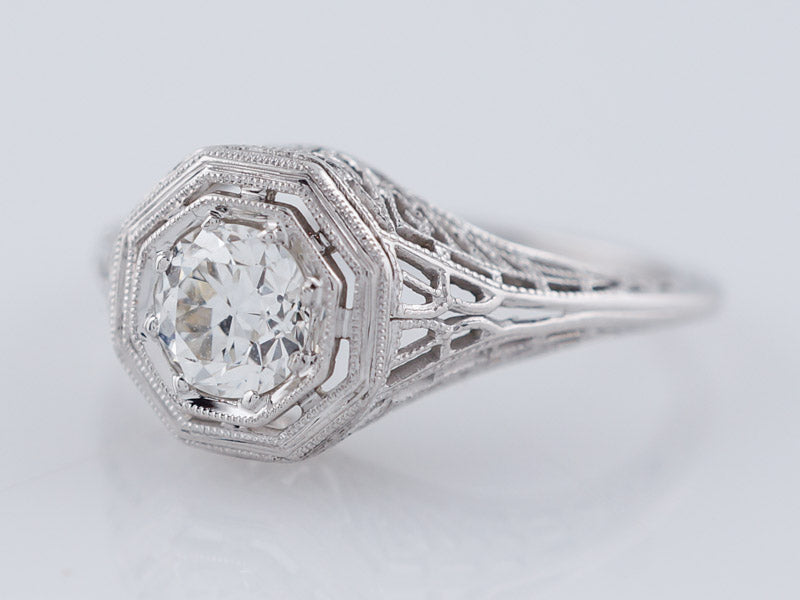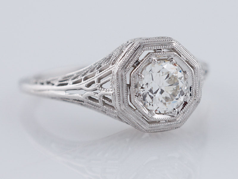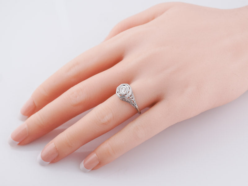 Vintage Art Deco Solitaire Diamond Filigree Engagement Ring