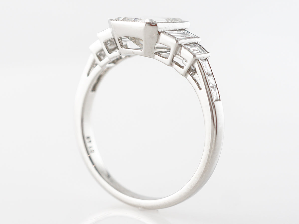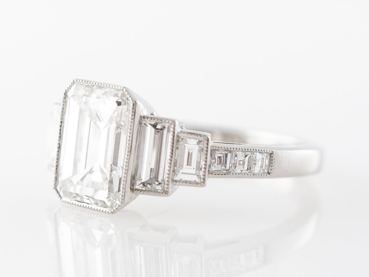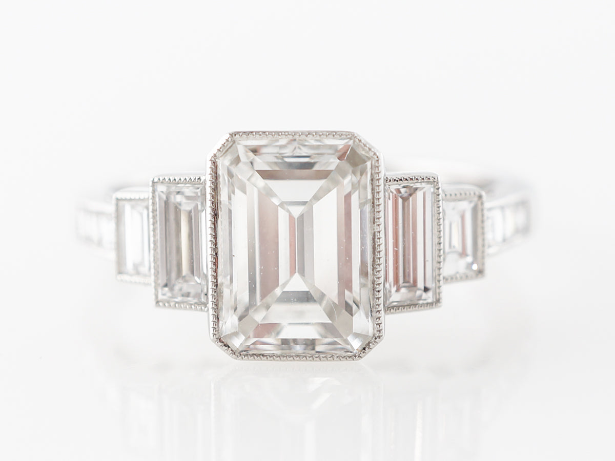 Deco Style Emerald Cut Diamond Engagement Ring in Platinum
