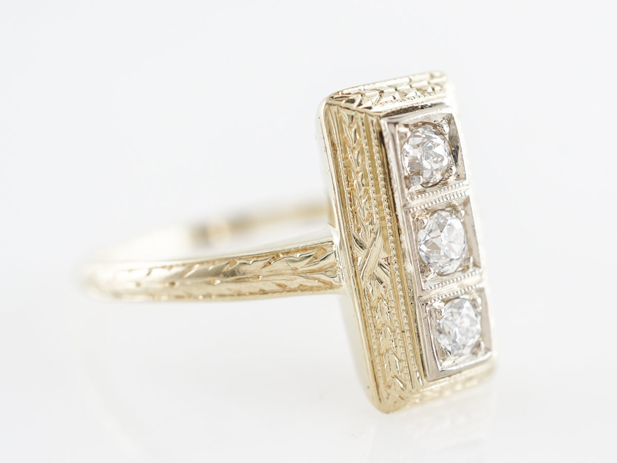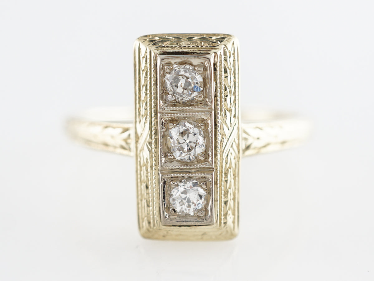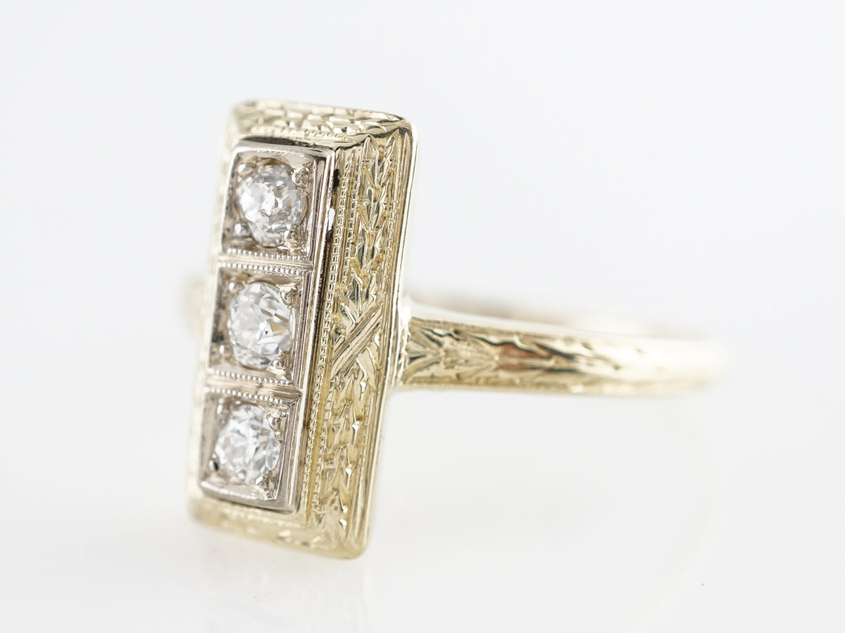Deco Three Stone Diamond Ring 14k Yellow Gold