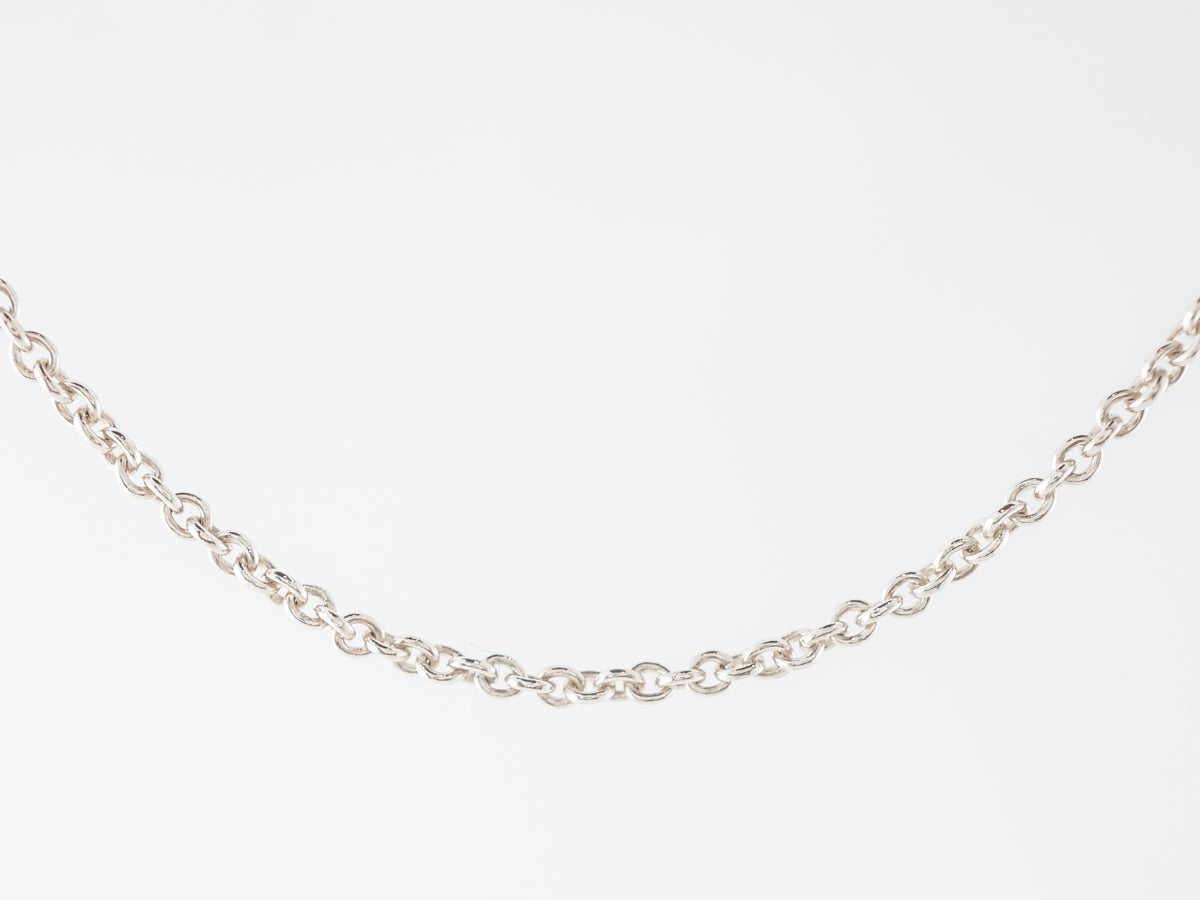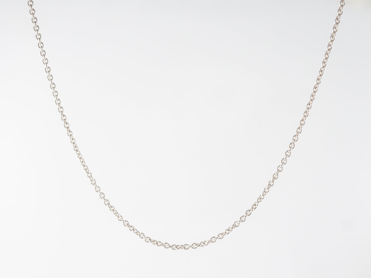 Delicate Tiffany Co. Chain in Sterling Silver. This Tiffany and Co. sterling silver chain necklace is 16 inches in length and weighs 2.5 grams. Easy to wear, a wonderful accent piece, or wear it with your favorite pendant.