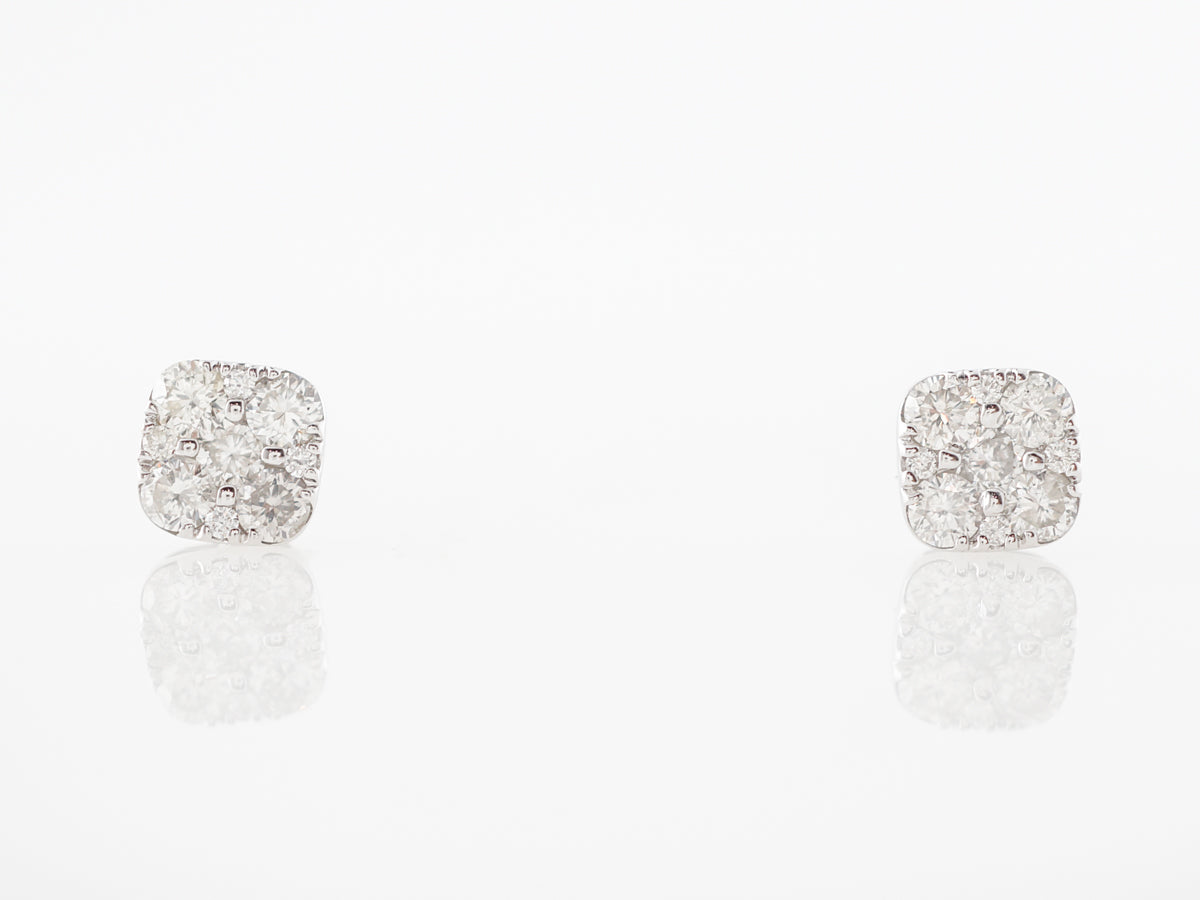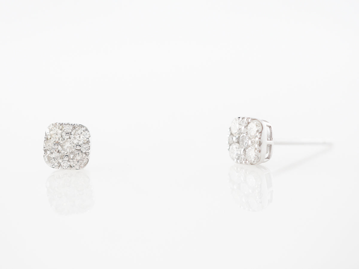 Diamond Cluster Earrings in 14k White Gold. These diamond cluster earrings finished in 14 karat white gold are a sparkling addition to any outfit. This simple classic look is a gorgeous staple for every collection.