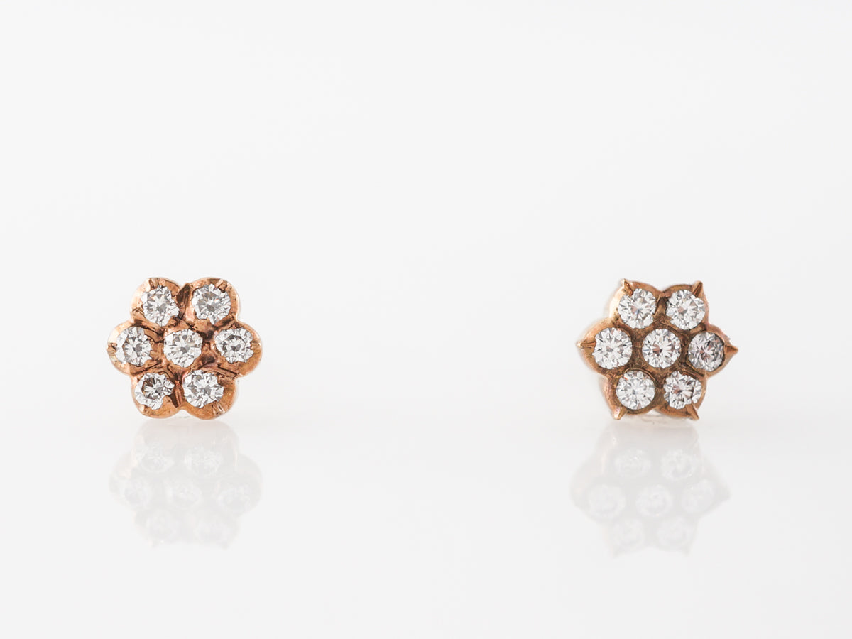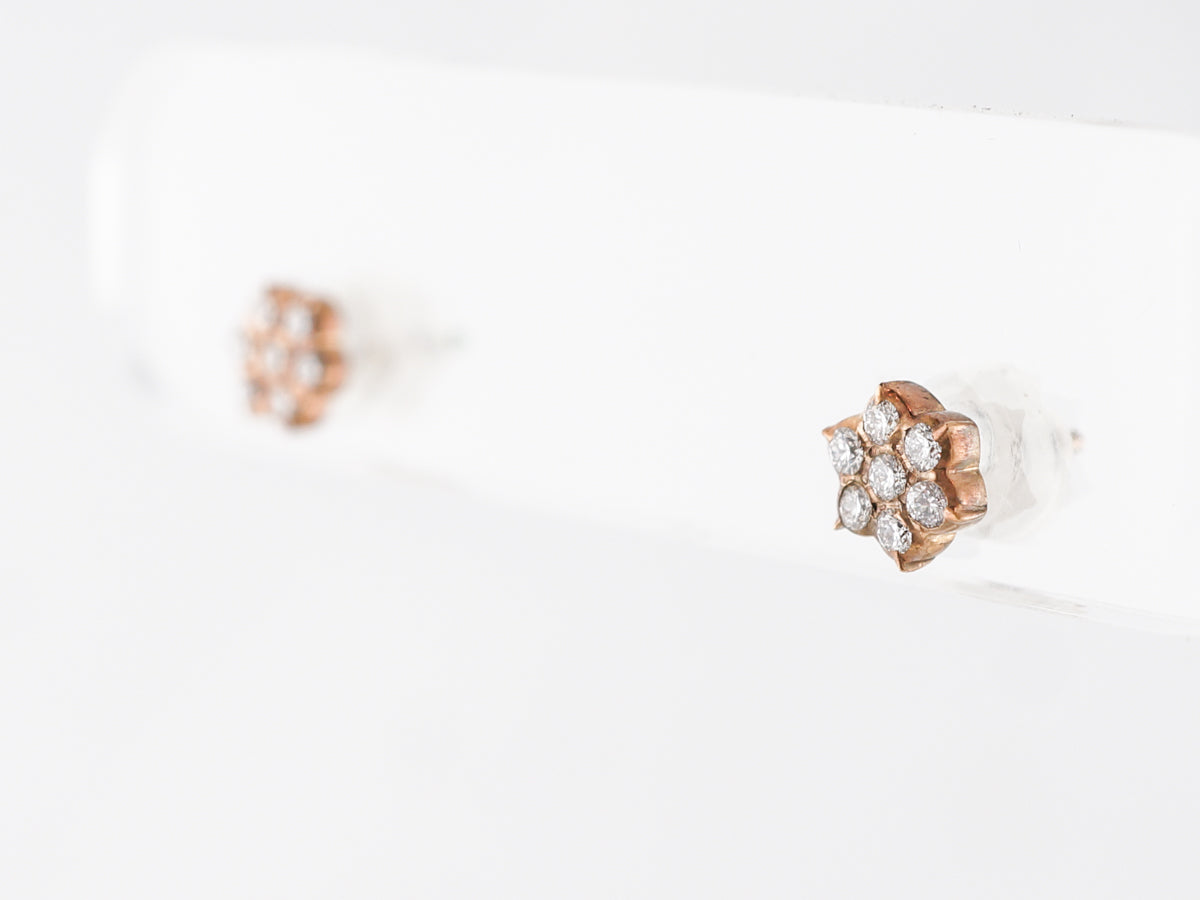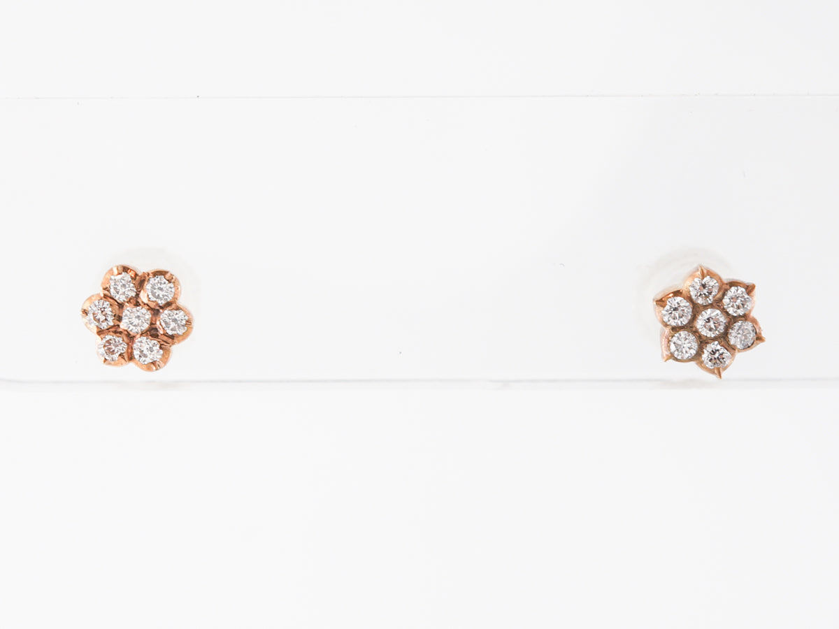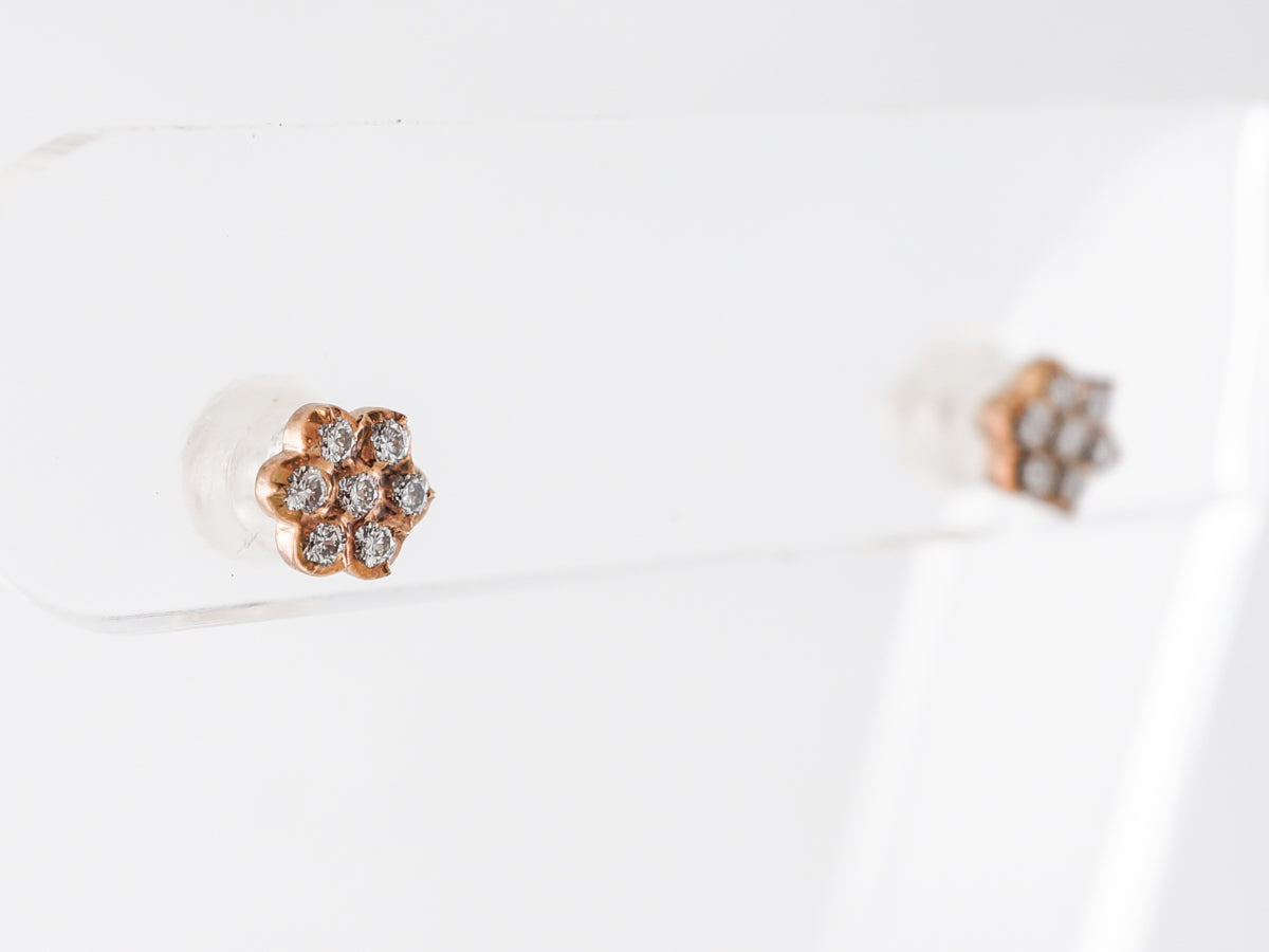 Diamond Cluster Earrings in 14k Yellow Gold. These modern stud earrings feature .25 carats of round cut diamonds and are set in 14 karat yellow gold. The brilliant white diamonds set in yellow gold with spaces between them creates somewhat of a honeycomb look. Wear these every day for a fabulous bit of sparkle!