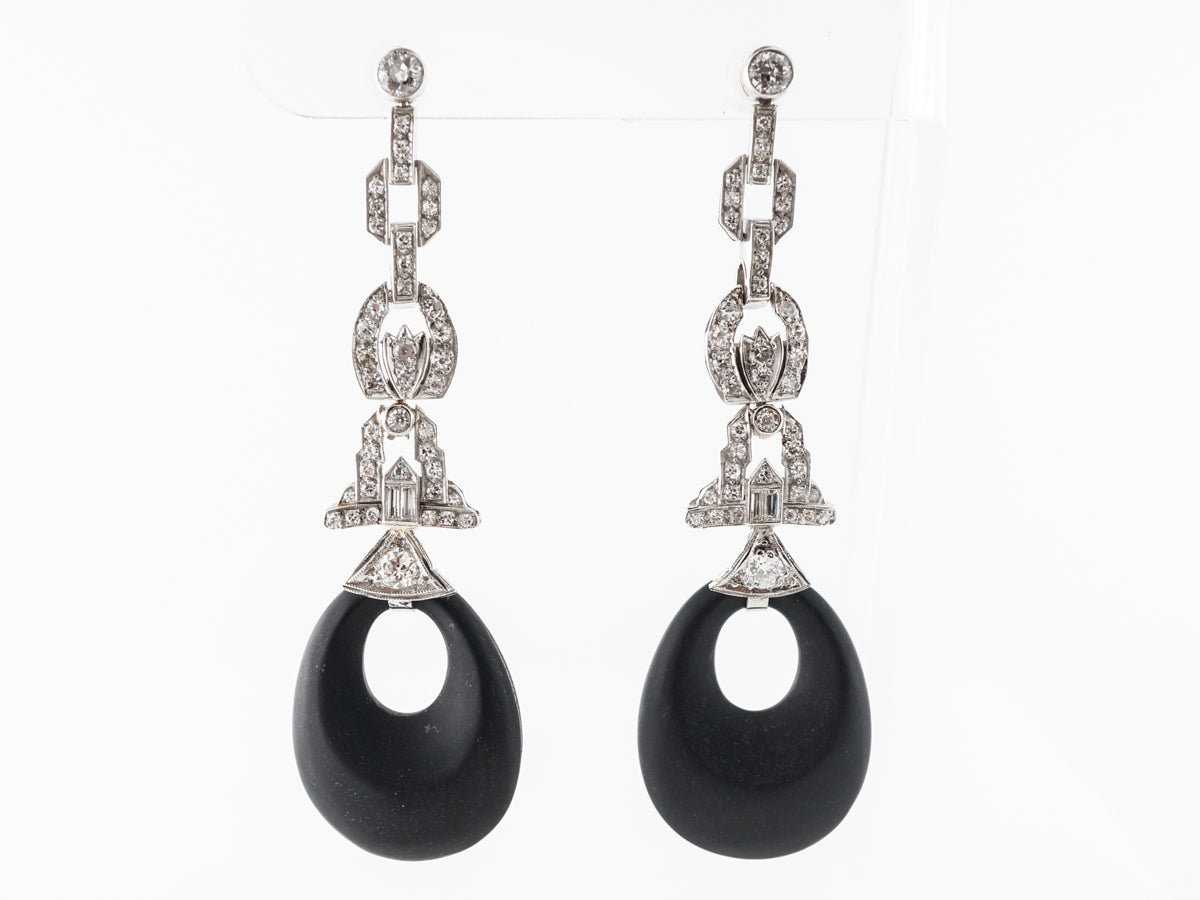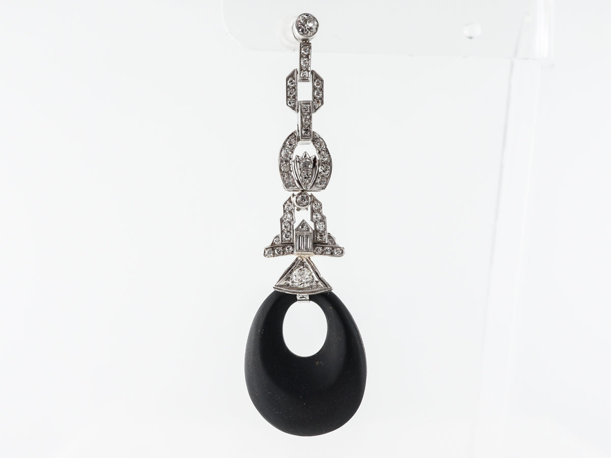 Diamond & Onyx Dangle Earrings in White Gold & Platinum