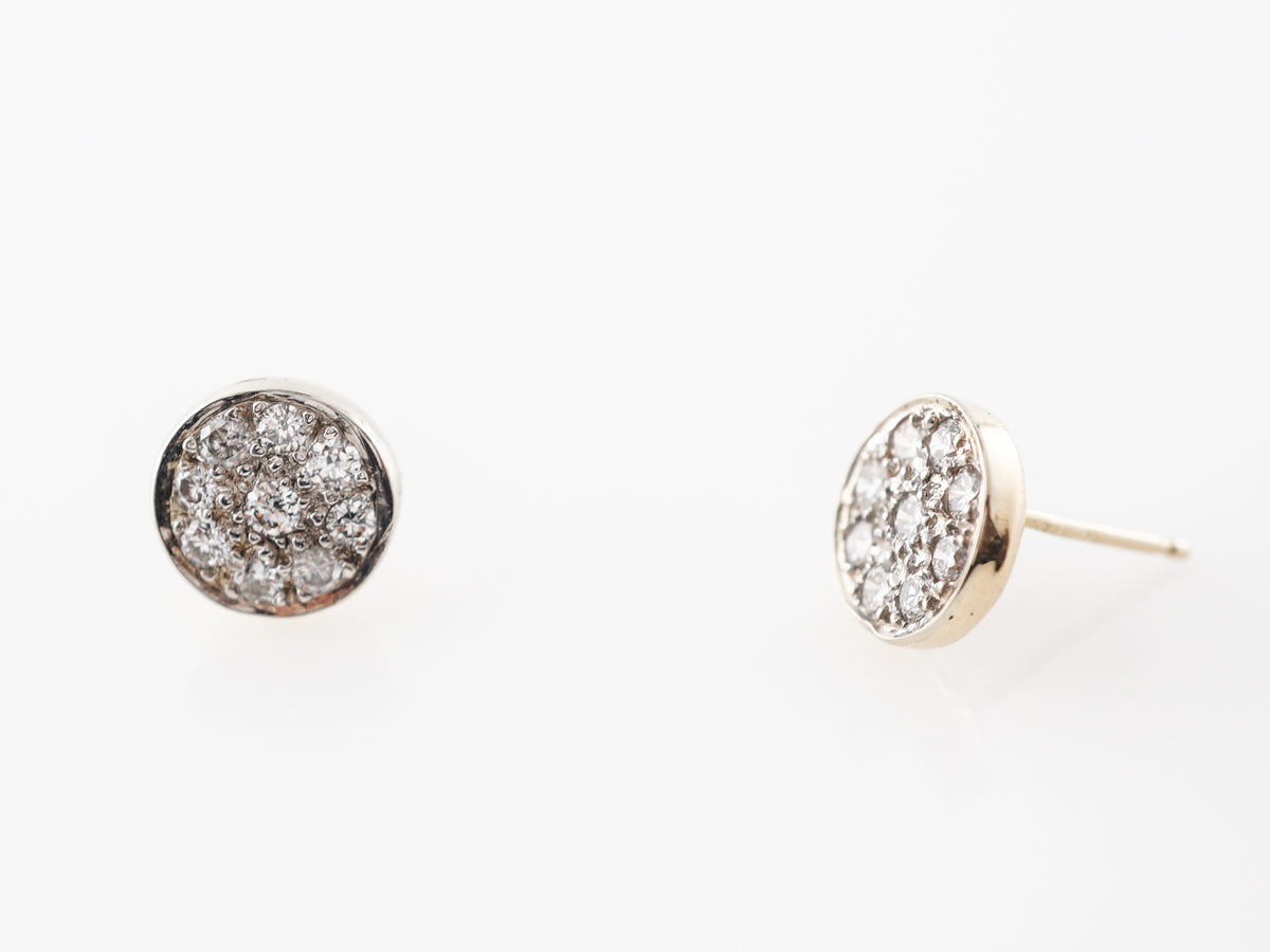 Diamond Pave Stud Disc Earrings in 14k Yellow Gold