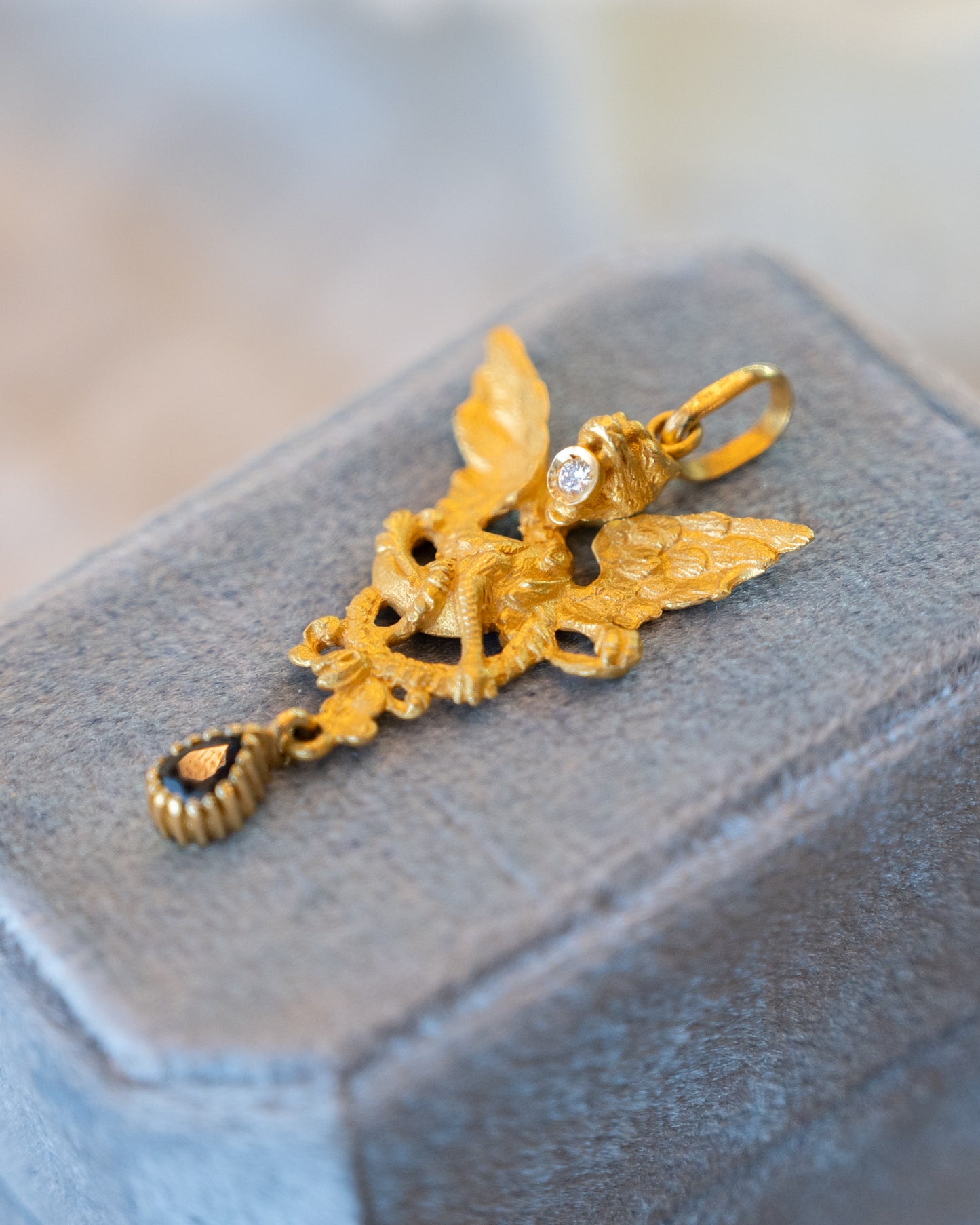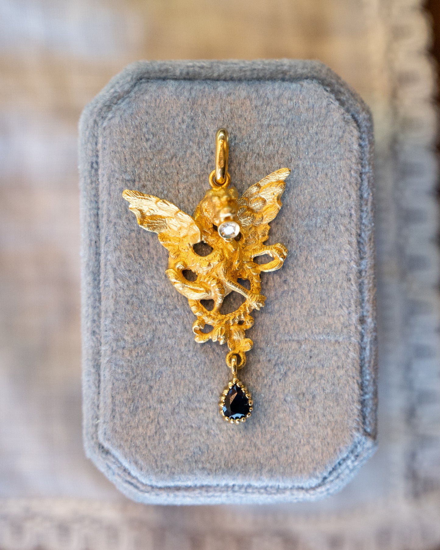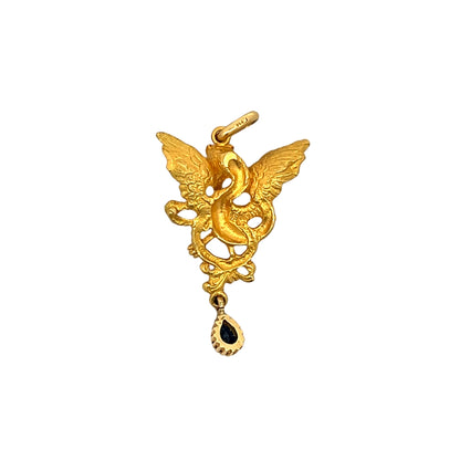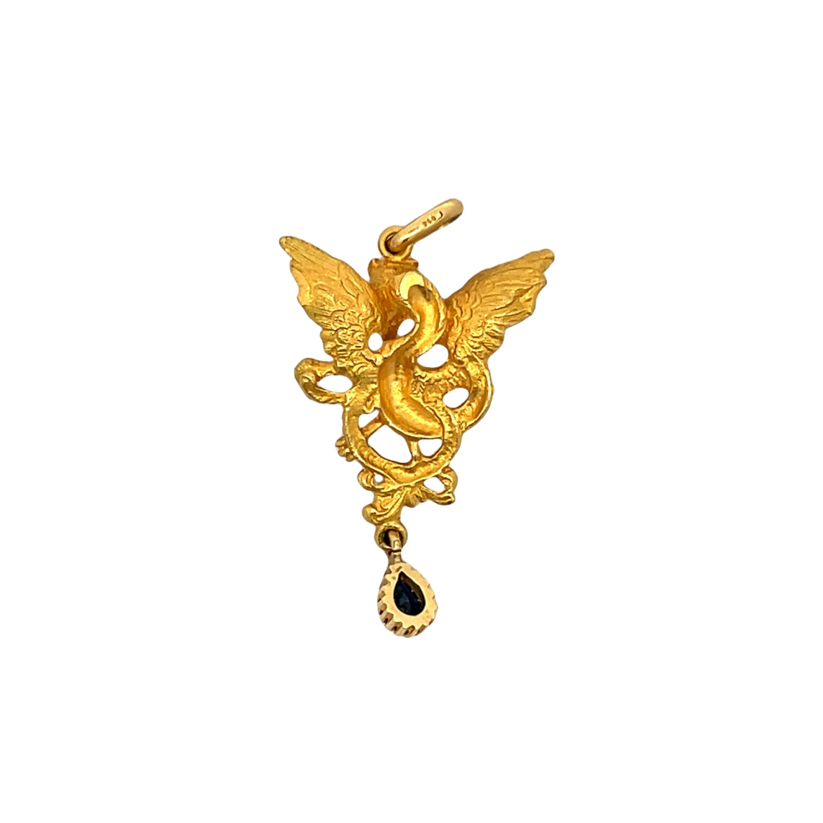 Diamond & Sapphire Dragon Pendant in 22k Yellow Gold