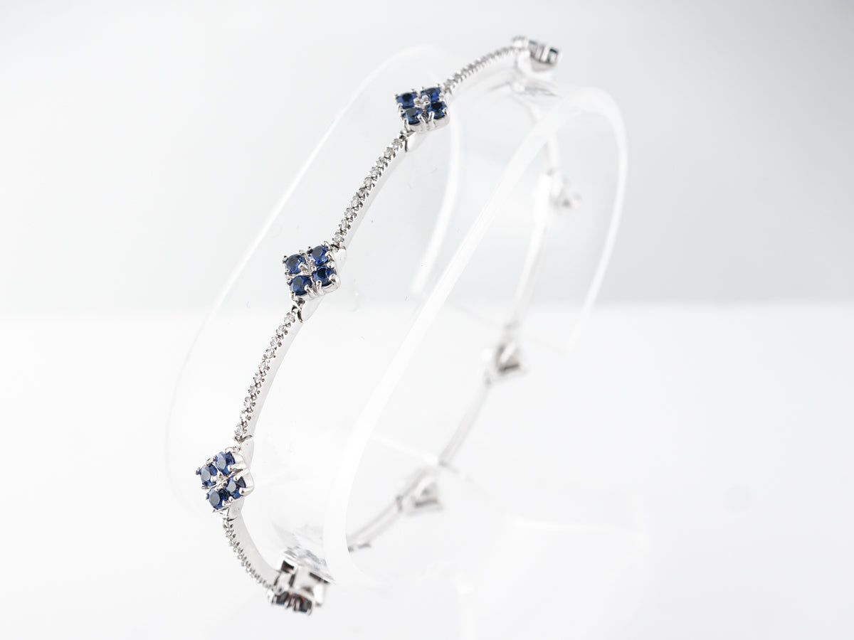 Diamond & Sapphire Line Bracelet in 18k White Gold