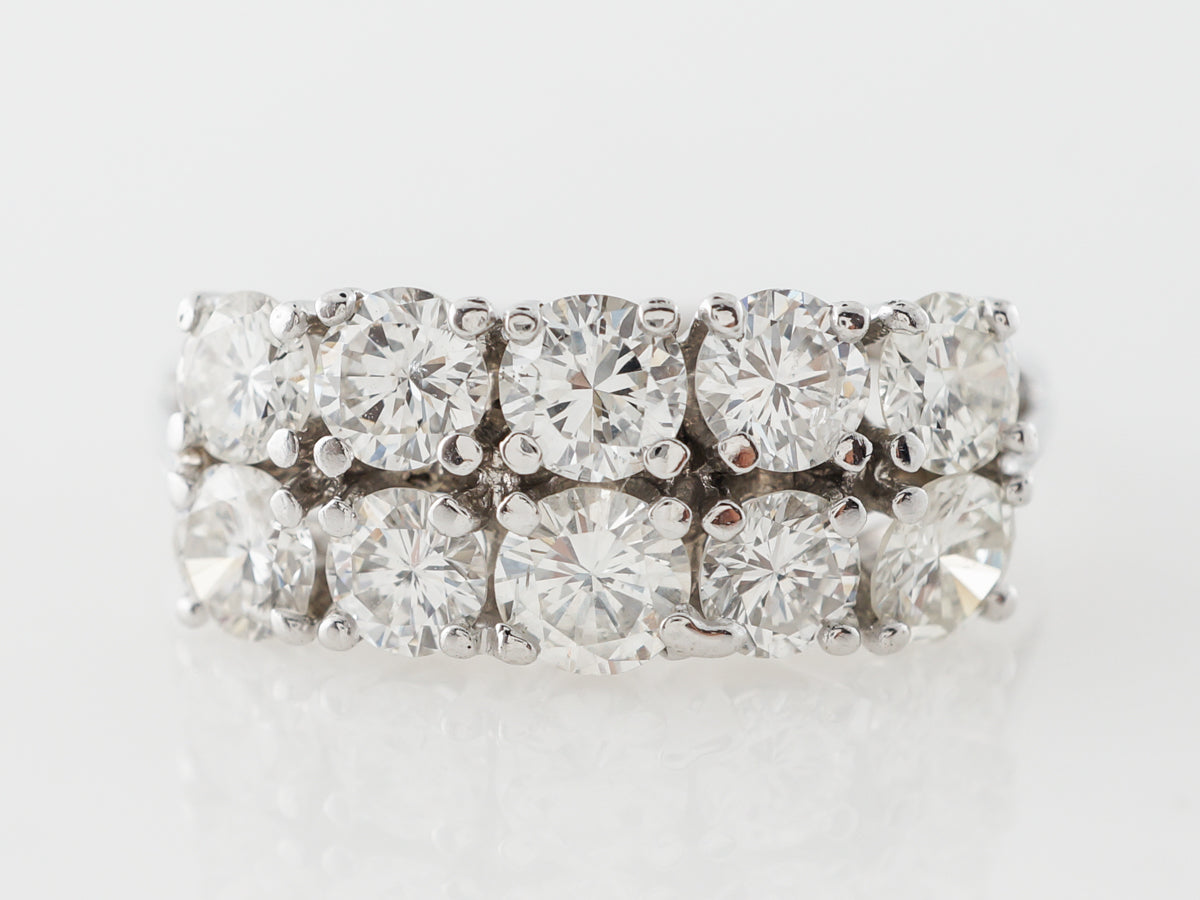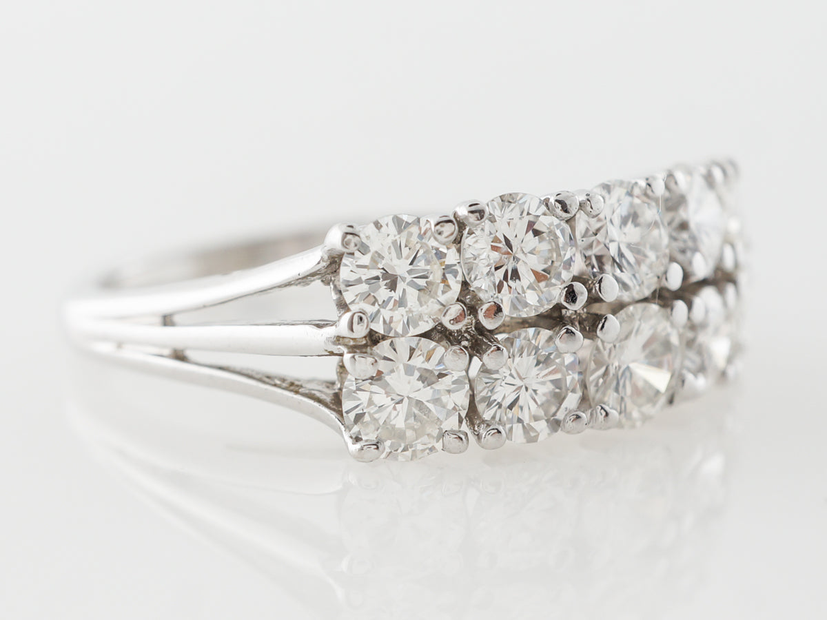 Doubled Diamond Right Hand Ring in 14k White Gold. This classy right hand ring features 2.42 carats of round brilliant cut diamonds in a simple 14 karat white gold setting. A brilliant ring that would be comfortable in a stack or perfect to be worn alone for an elegant evening wear look. This ring is a perfect addition to any collection!