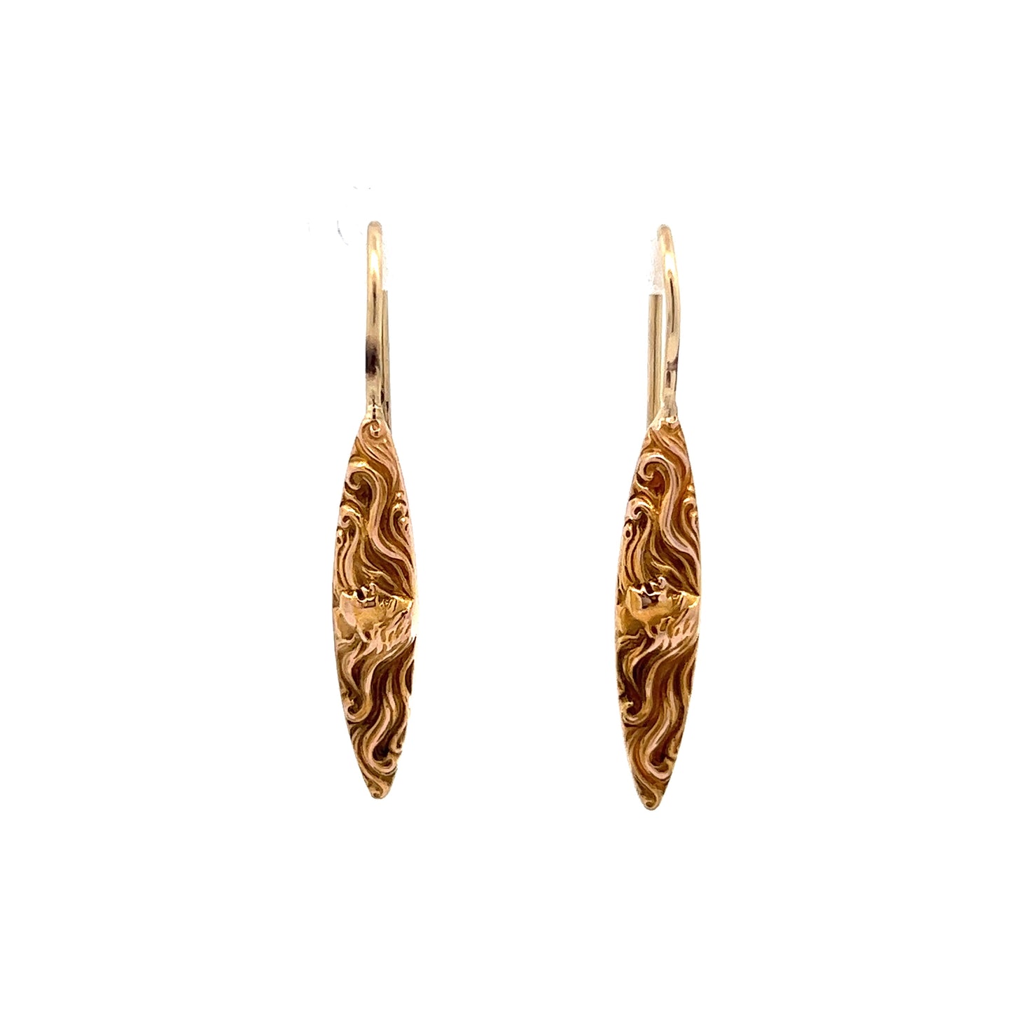 Glamorous and chic, these antique drop earrings will bring vintage elegance to any look. Crafted in 14 karat yellow gold, they feature an intricate design of a woman's face and hair, inspired by the Victorian era. To complete the classic look, the earrings are adorned with .10 carats of round brilliant cut diamonds for a touch of sparkle. Perfect for taking you from day to night, these timeless earrings will last a lifetime.