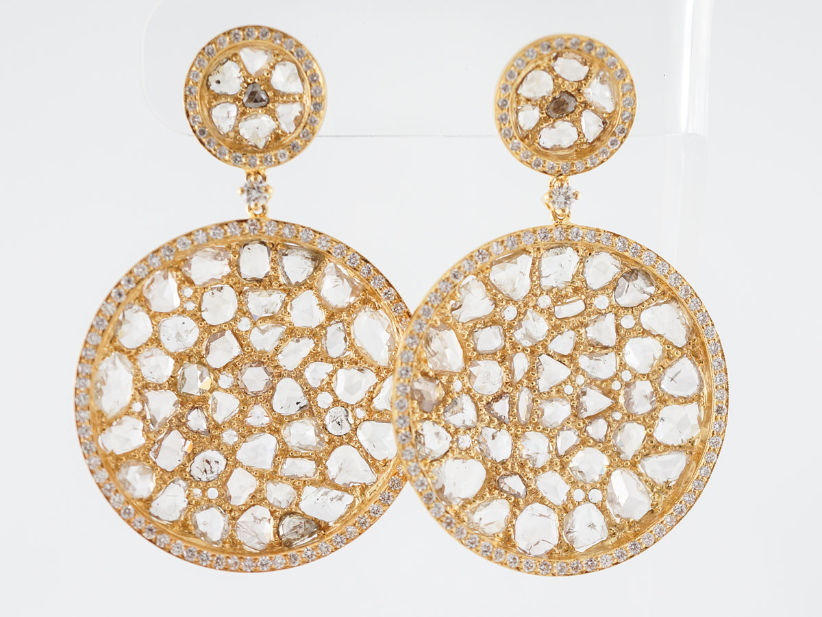 ***RTV***Earrings Modern 19.46 Rose Cut Diamonds in 18K Yellow Gold