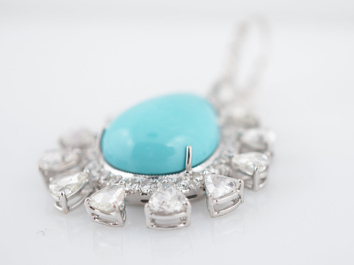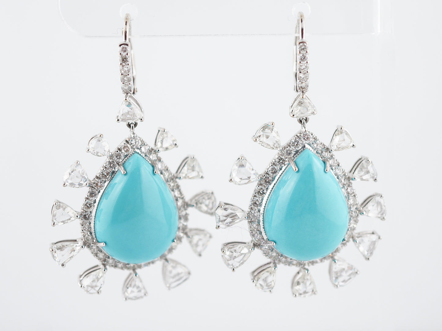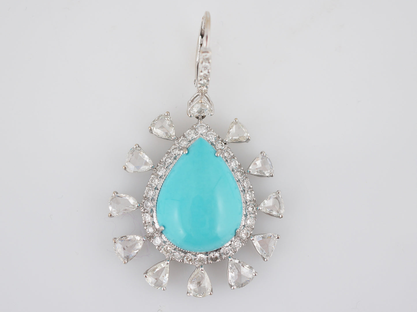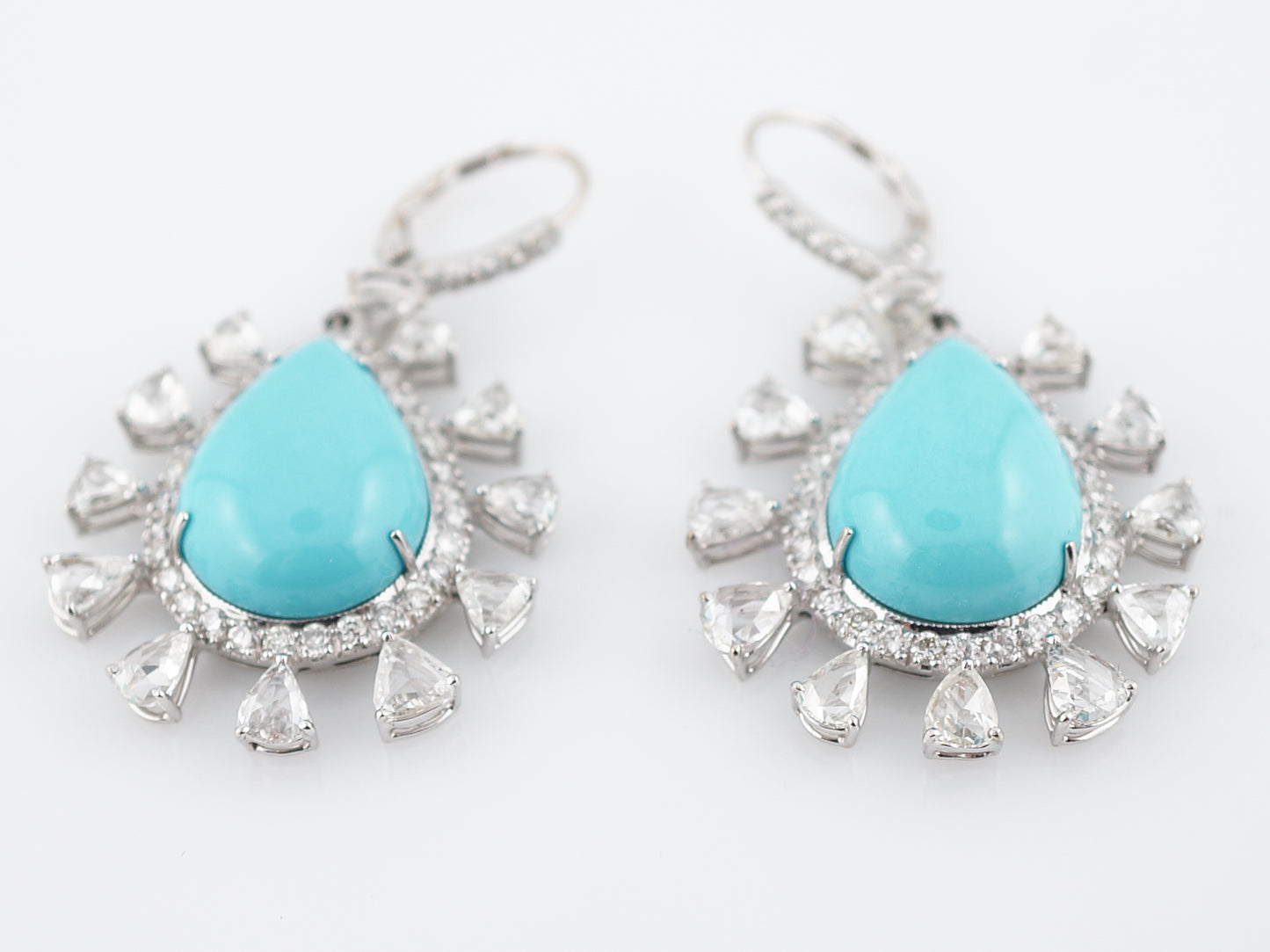 ***RTV***Earrings Modern 23.74 Cabochon Cut Turquoise & 8.82 Pear & Round Brilliant Cut Diamonds in 18K White Gold