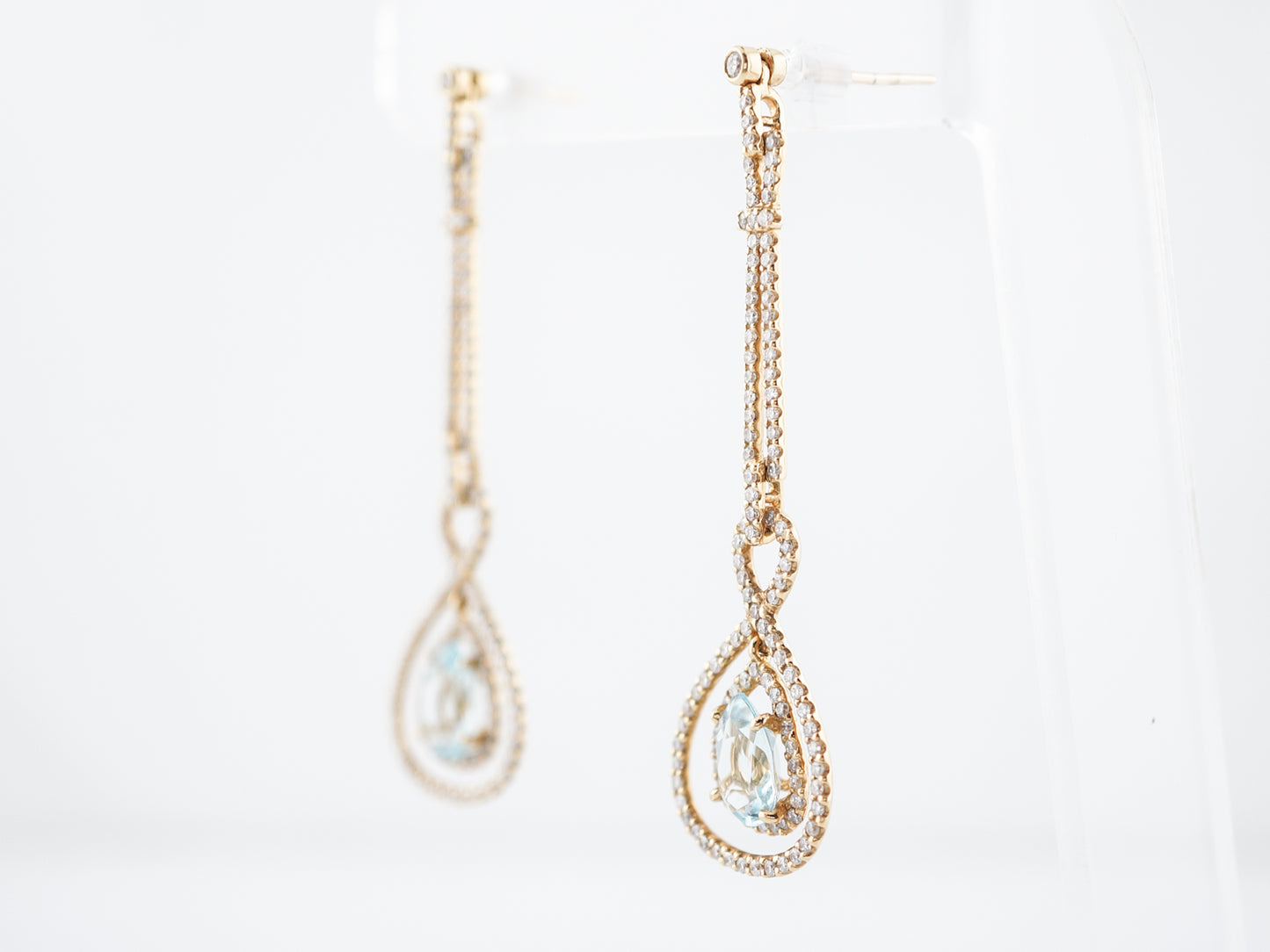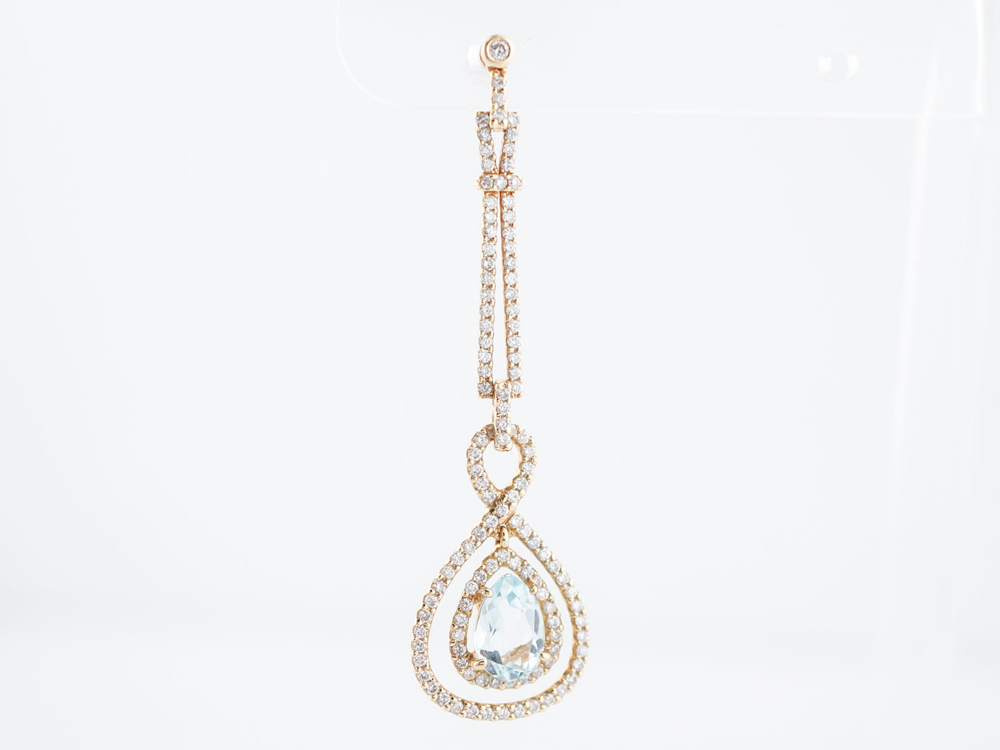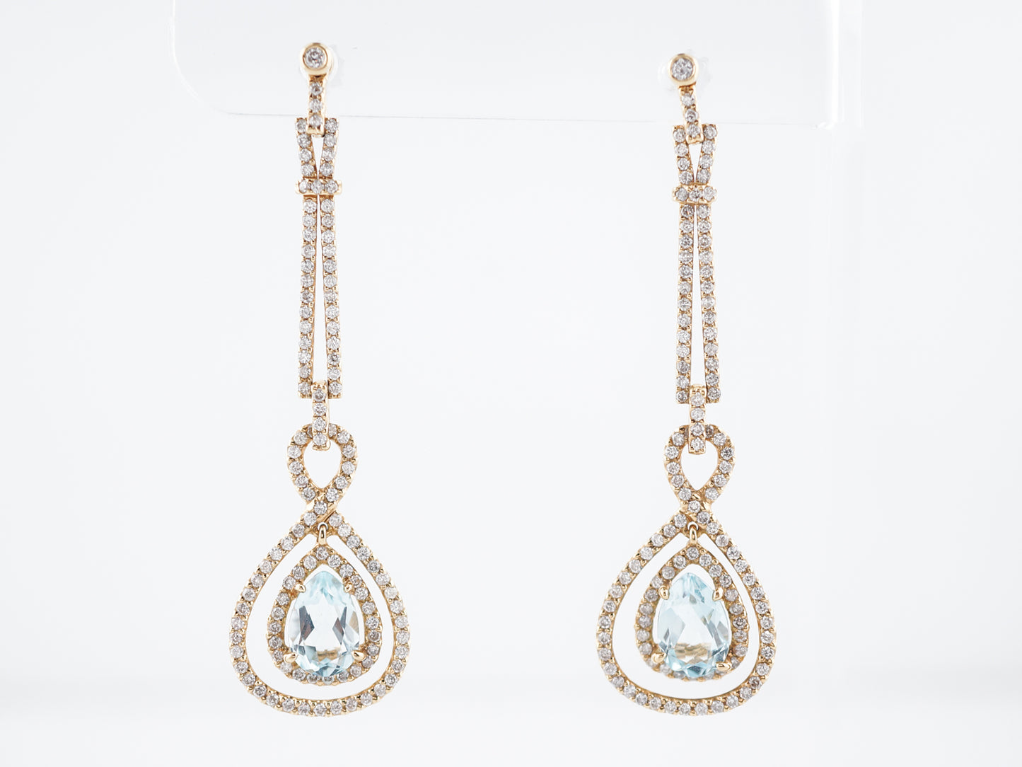 Earrings Modern 3.02 Pear Cut Aquamarine & Round Brilliant Cut Diamond in 18k Yellow Gold