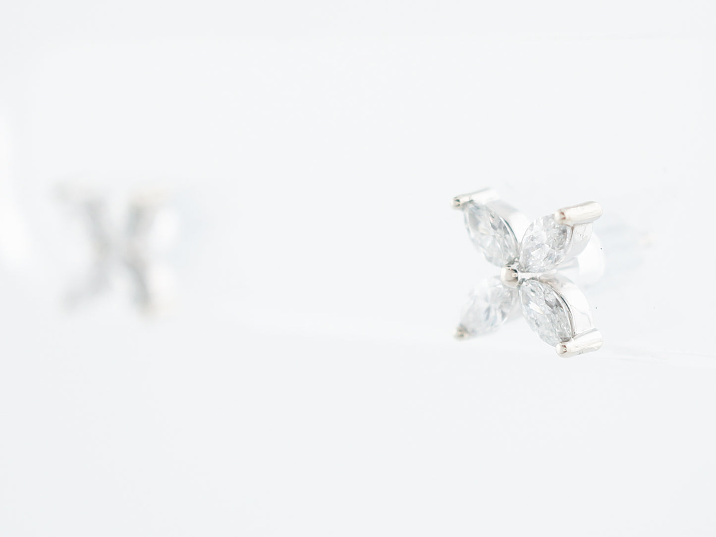These Modern Era, stud style earrings might look like an X to some, or a butterfly to others no matter how you see them youll see they are the perfect amount of sparkle. Made in 14 karat white gold, and having .74 carats of marquise shaped diamonds prong set on post style earrings.