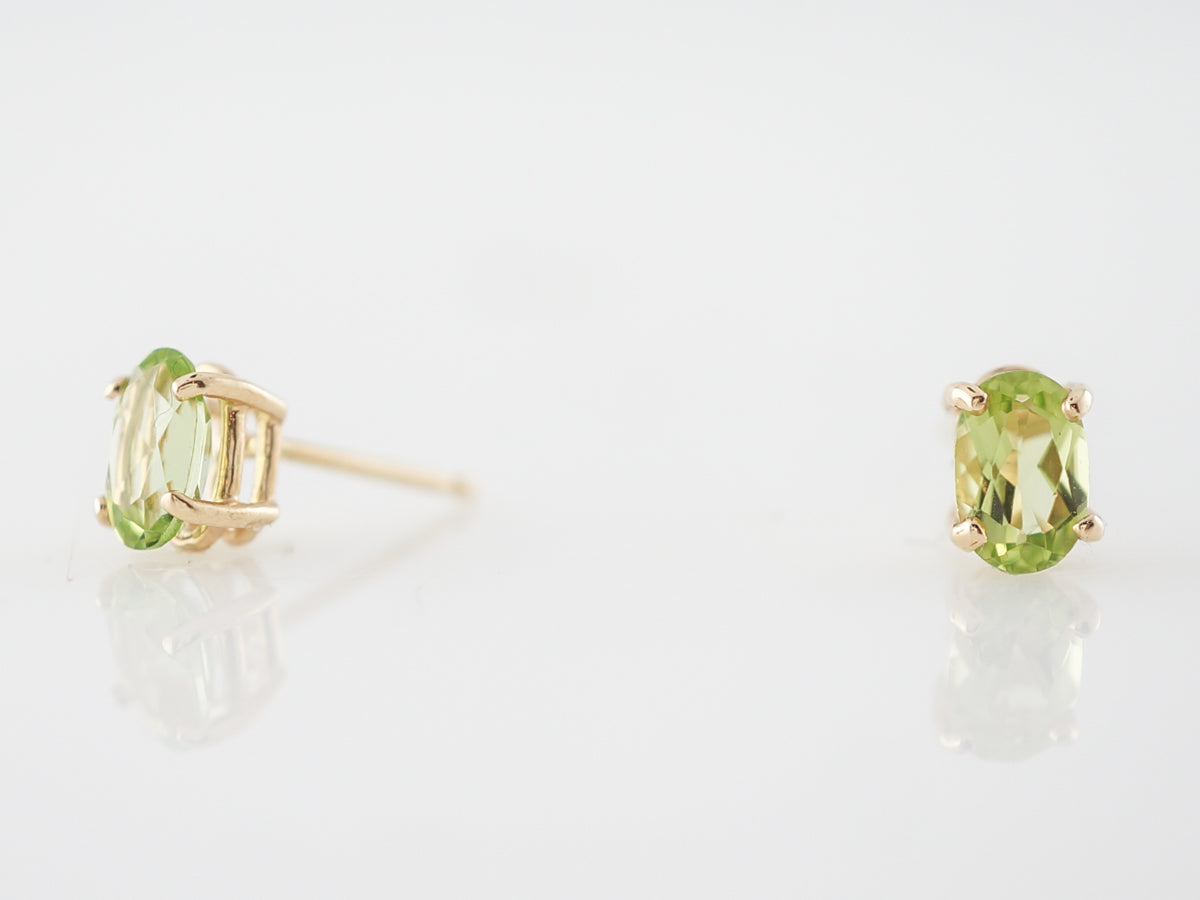 Earrings Modern .80 Oval Cut Peridot in 14k Yellow Gold