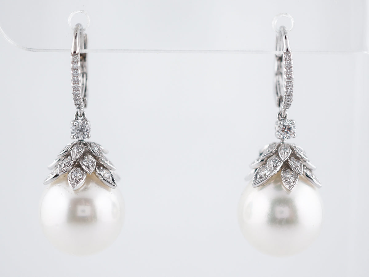 Earrings Modern Pearl & 1.34 Round Brilliant Cut Diamonds in Platinum