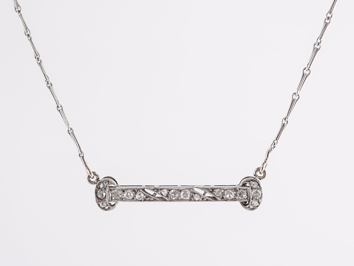 Edwardian Diamond Bar Pendant Necklace in Platinum