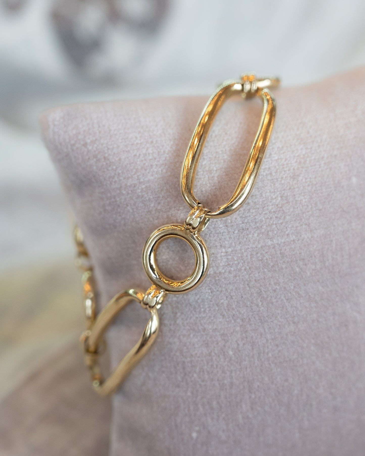 The mix of link shapes gives this bracelet a distinctive look that stands out from regular chain styles. This bracelet can be worn alone as a statement piece or combined with other bracelets for a layered style.