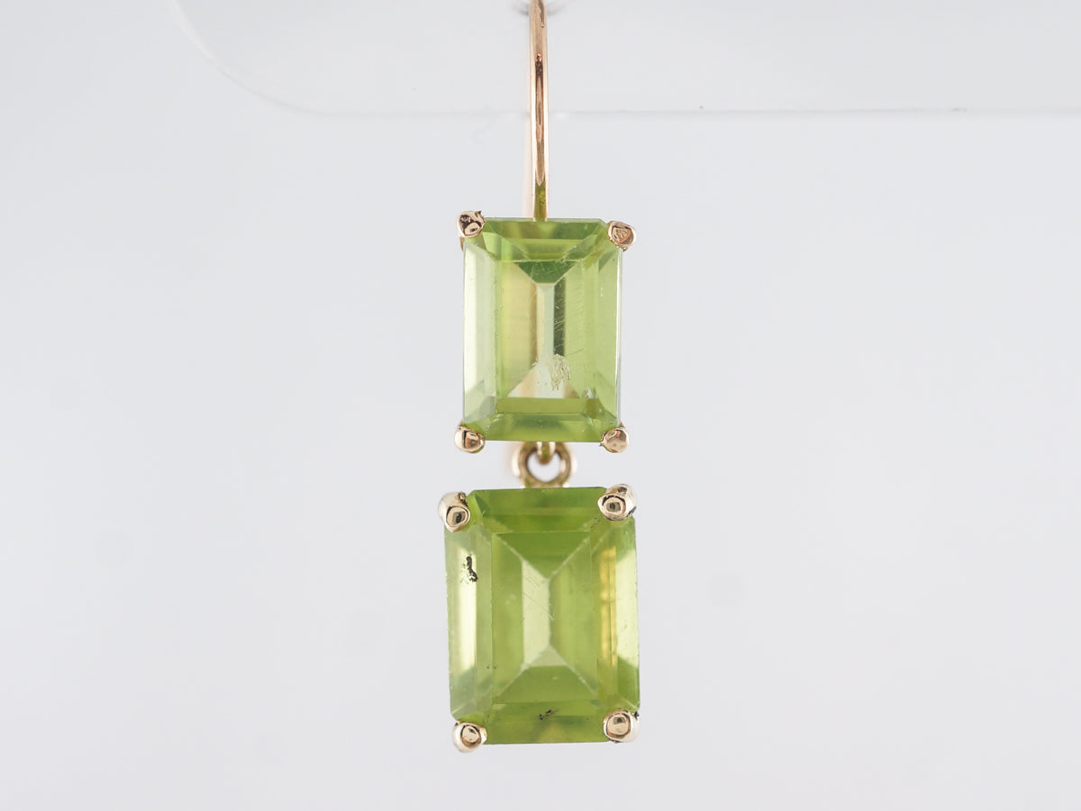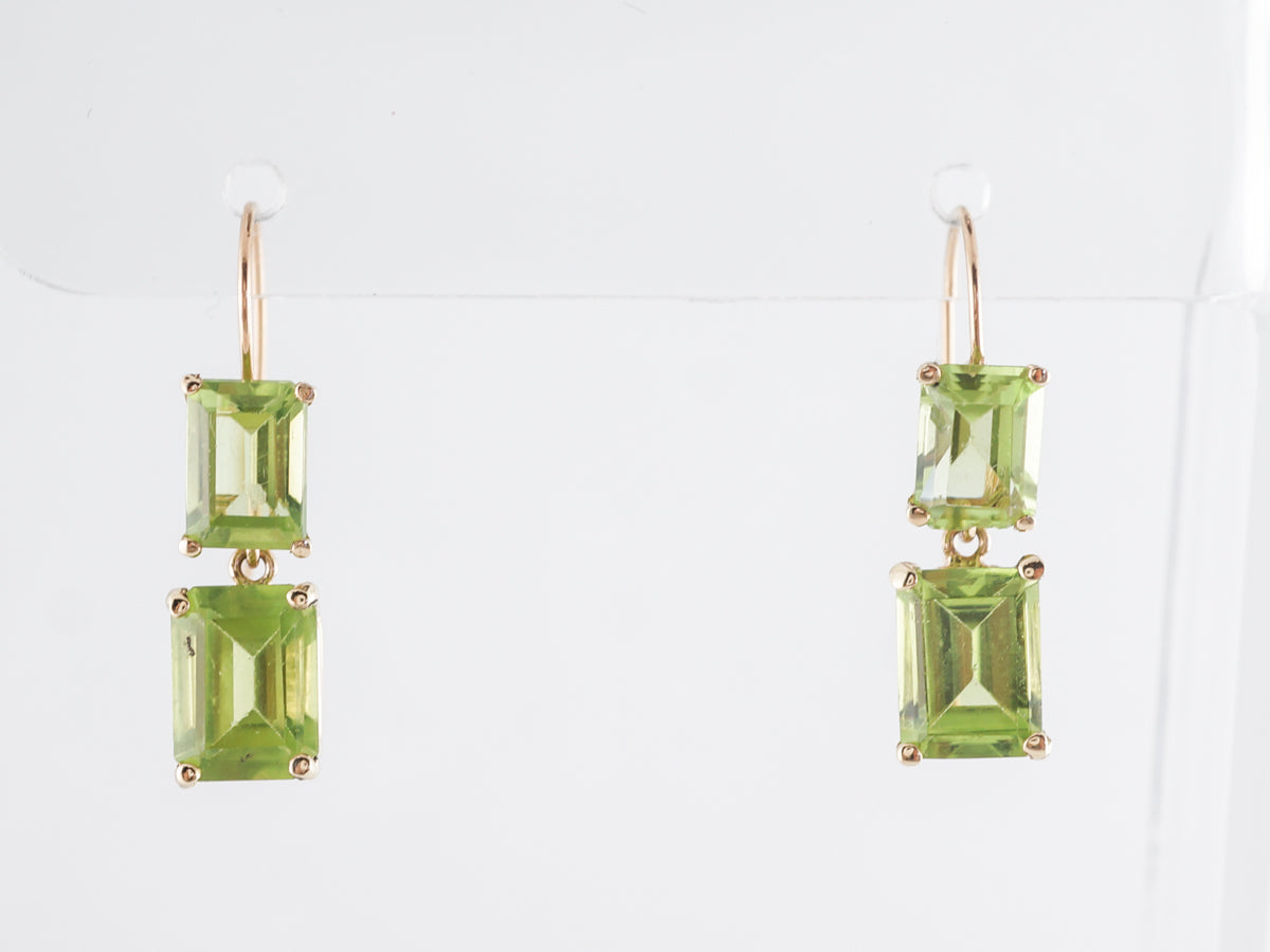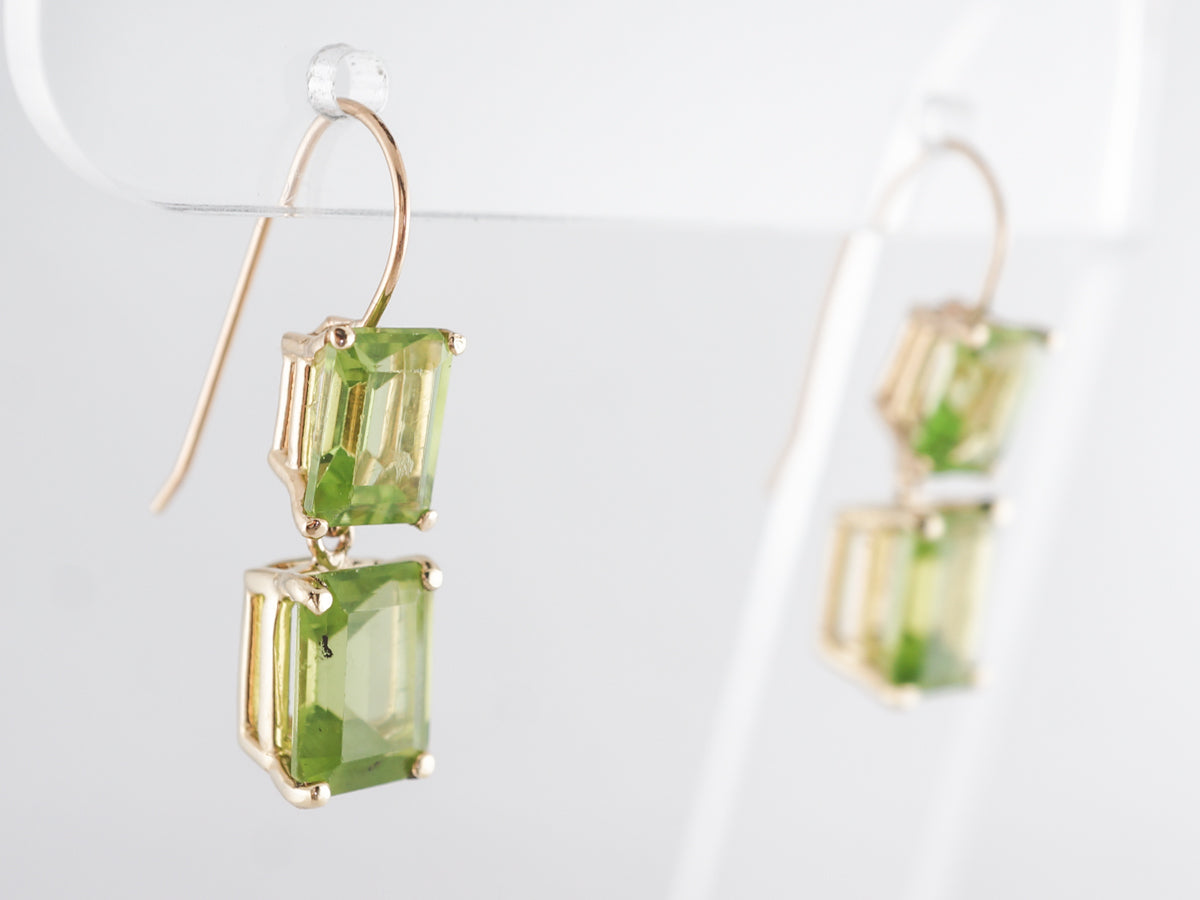 Emerald Cut Peridot Drop Earrings in 14k Yellow Gold
