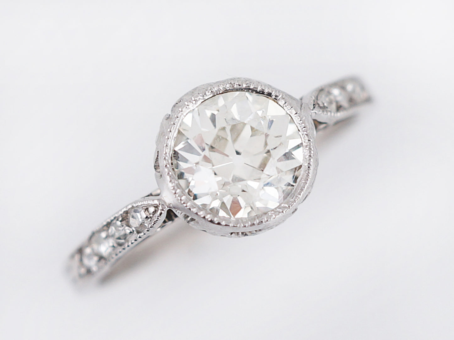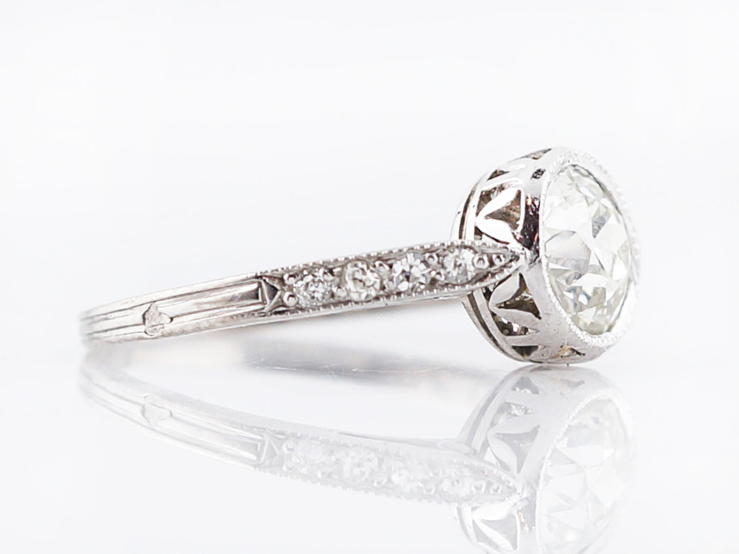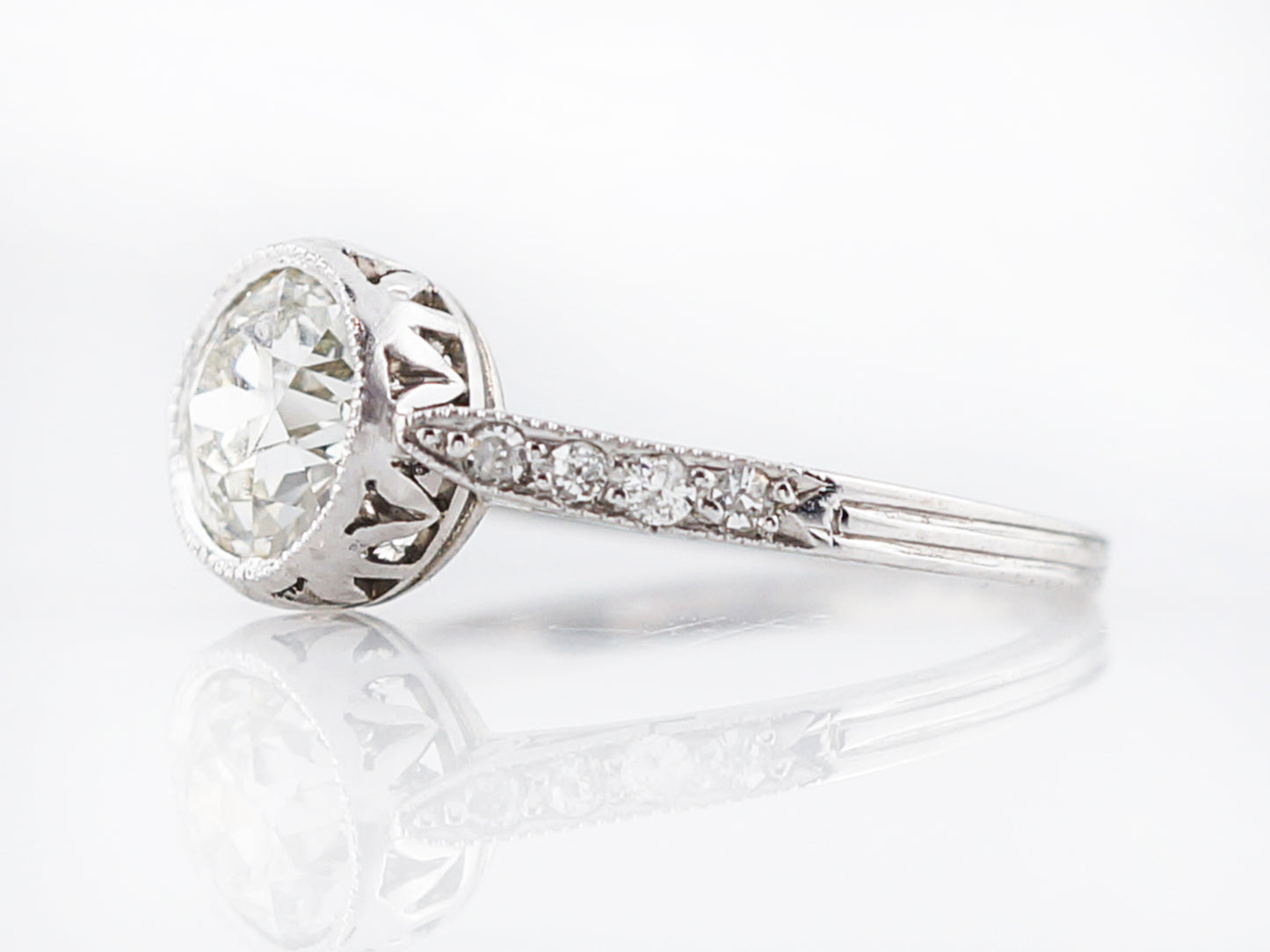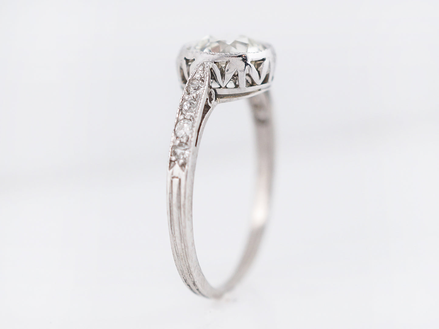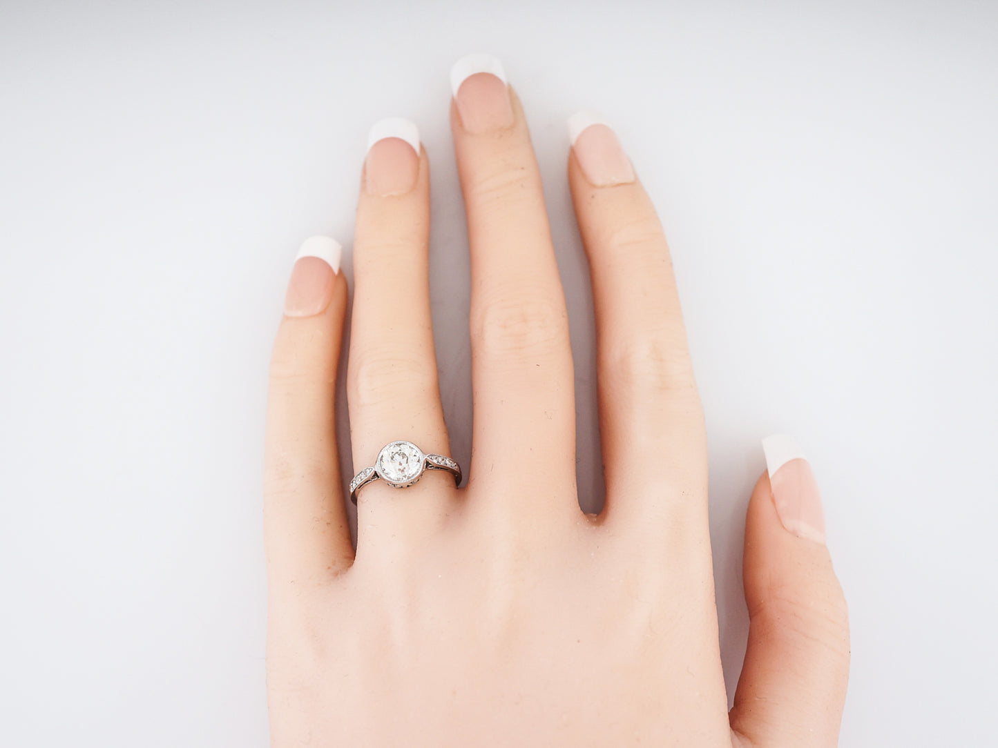 Antique Engagement Ring French Art Deco .93 Old European Cut Diamond in Platinum