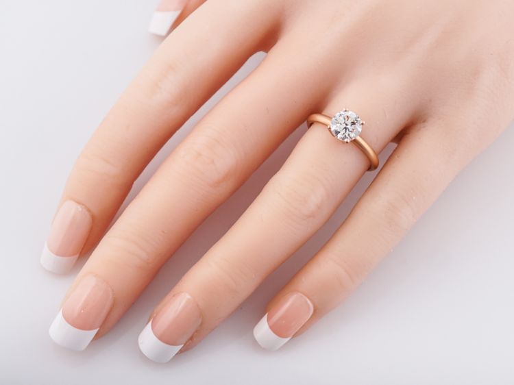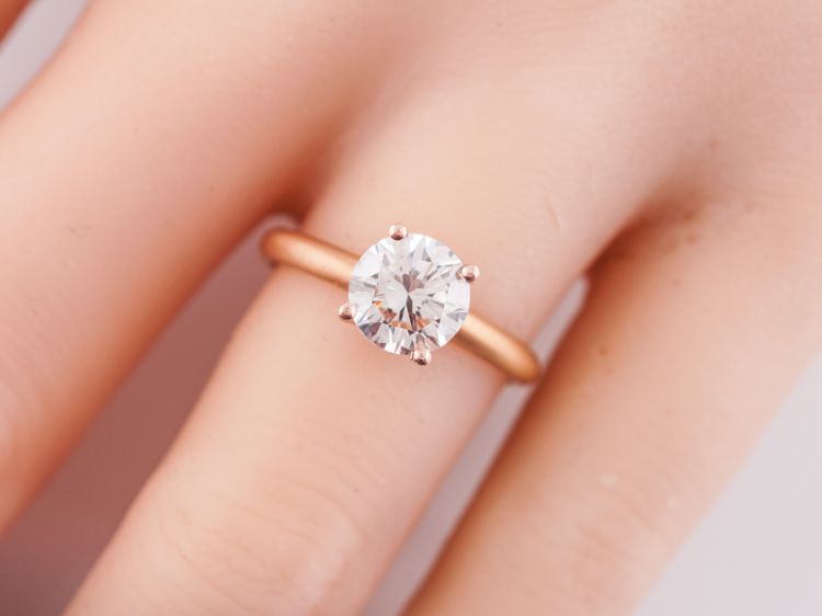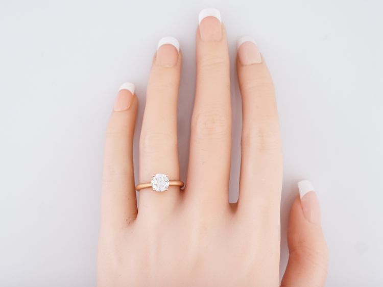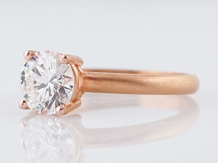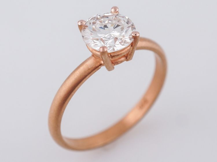 Engagement Ring Modern 1.09 Round Brilliant Cut Diamond in 14k Rose Gold