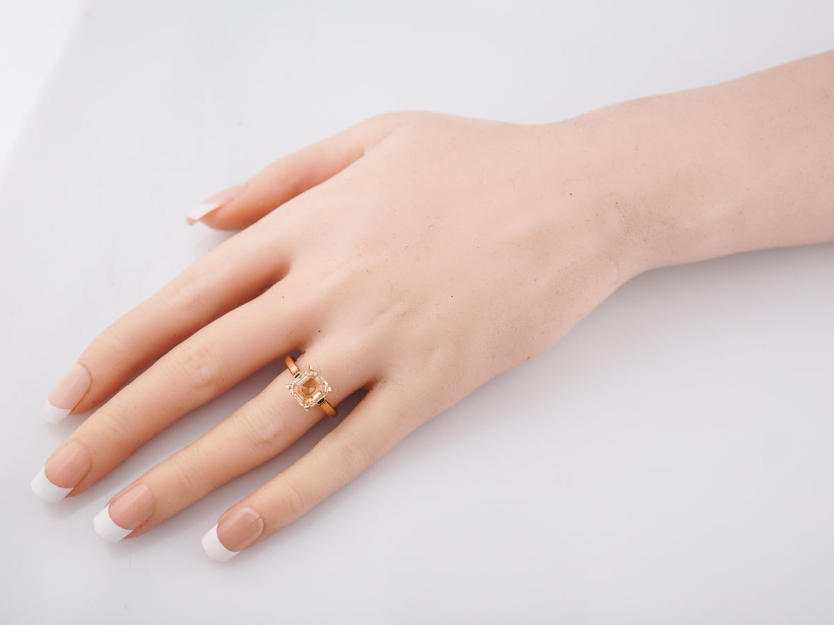 This modern engagement ring features a 2.86 carat square cut yellow sapphire. This striking sapphire ring has a sleek modern look that offers a wonderful alternative to a diamond engagement ring. Finished in 14k yellow gold, the center stone is made even more vibrant by the color from the mounting. A beautiful one of a kind piece for someone looking for a unique modern engagement ring!