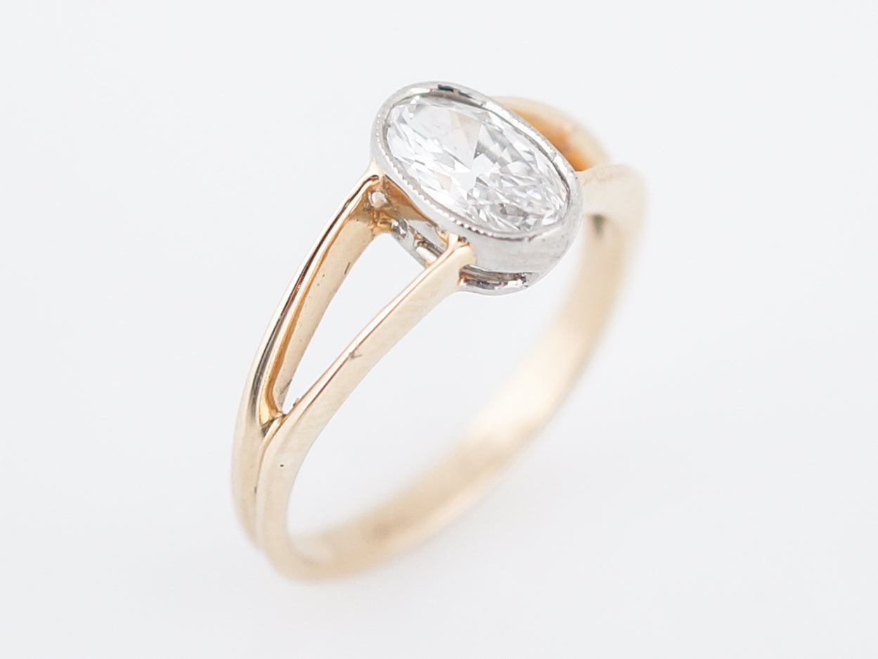 Engagement Ring Modern .63 Oval Cut Diamond in 14K Yellow Gold & Platinum