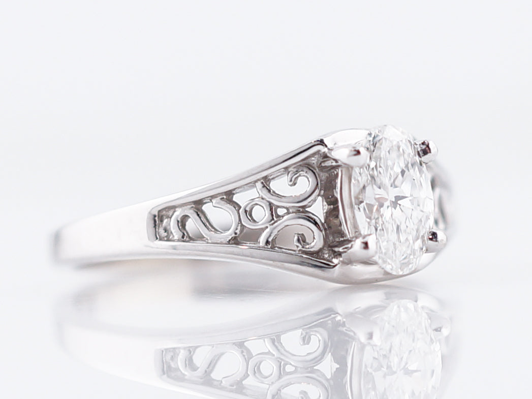 Engagement Ring Modern .71 Oval Cut Diamond in 14k White Gold