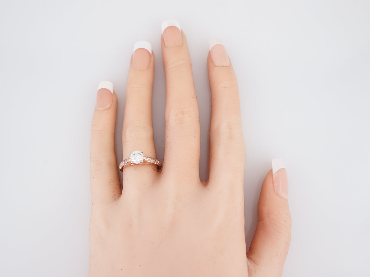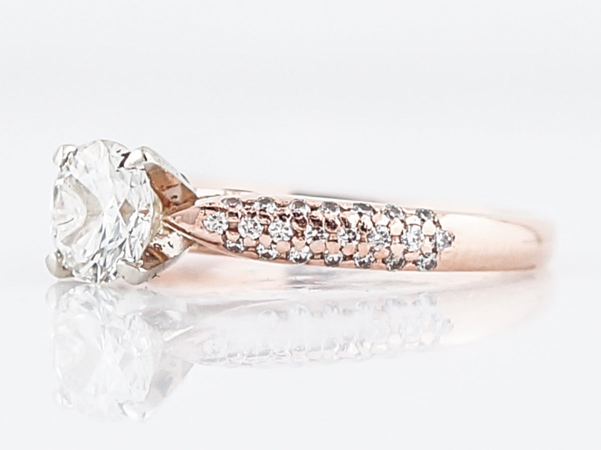 Engagement Ring Modern .74 Old European Cut Diamond in 14k Rose & White Gold