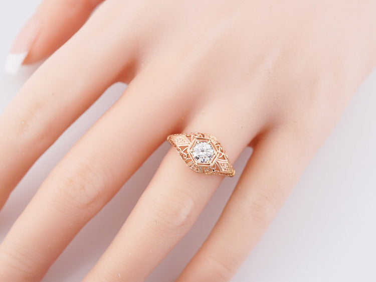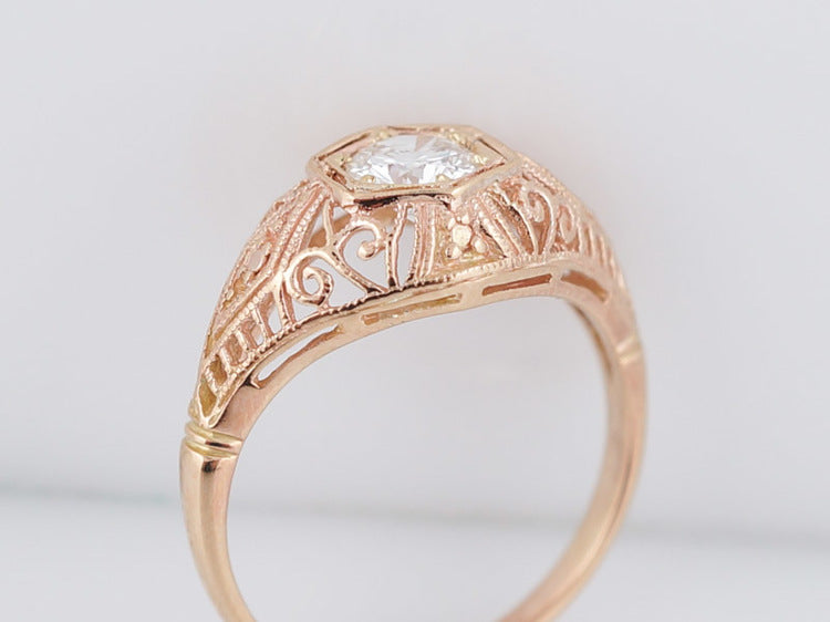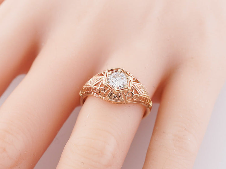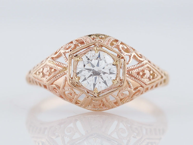 Engagement Ring Modern Antique Style .45ct Round Brilliant Diamond in 14k Rose Gold