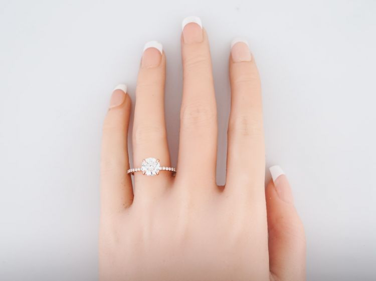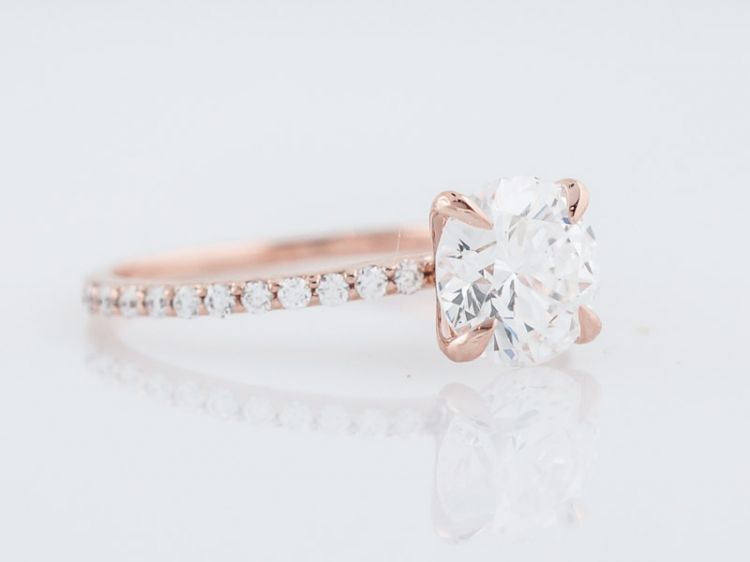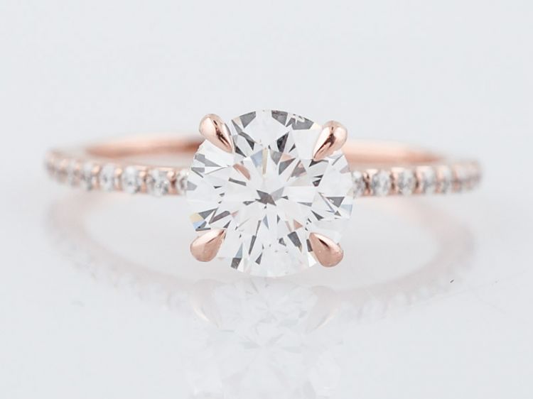 Engagement Ring Modern GIA 1.51 Round Brilliant Cut Diamond in 14k Rose Gold