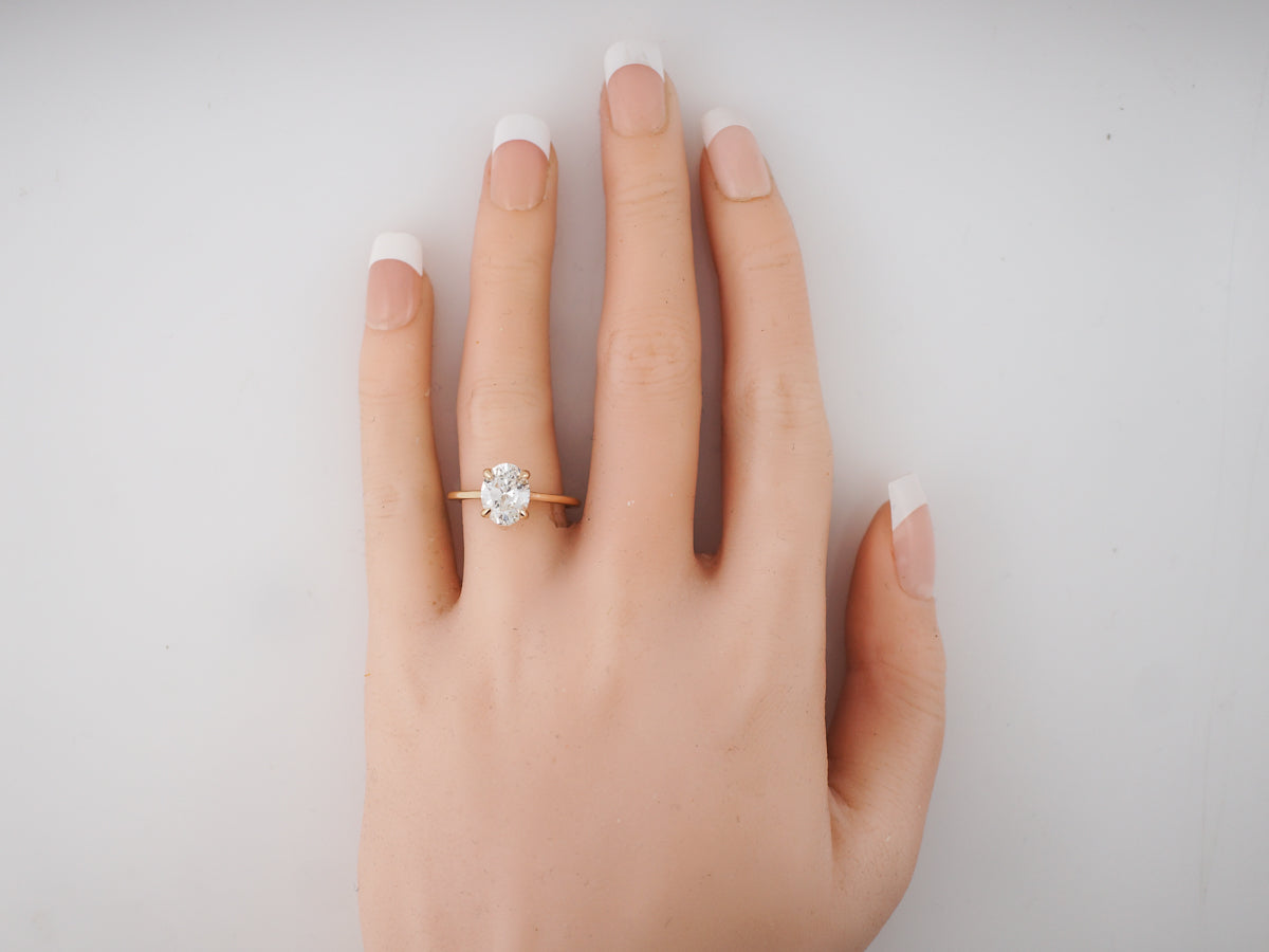 Engagement Ring Modern GIA 2.02 Oval Cut Diamond in 14k Yellow Gold
