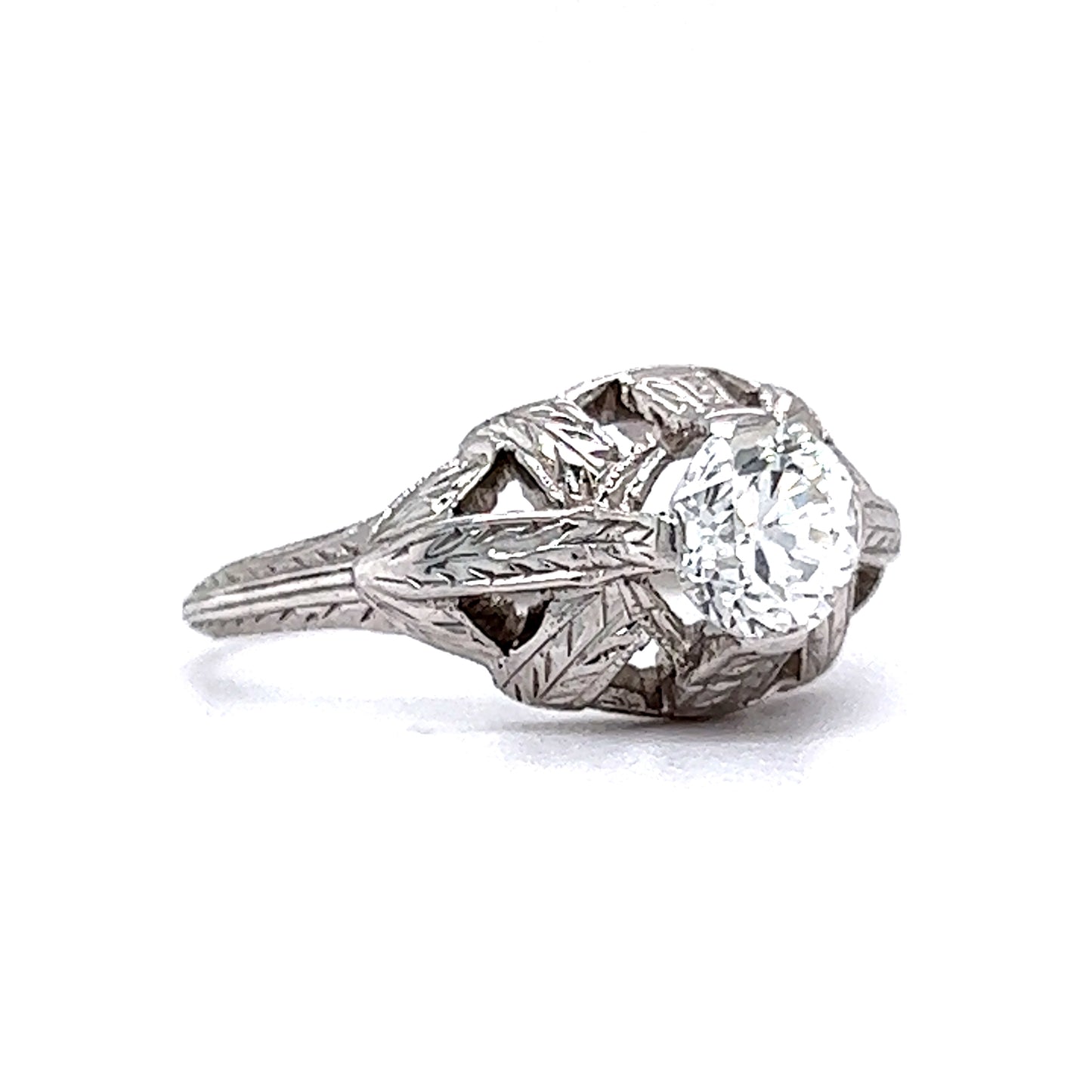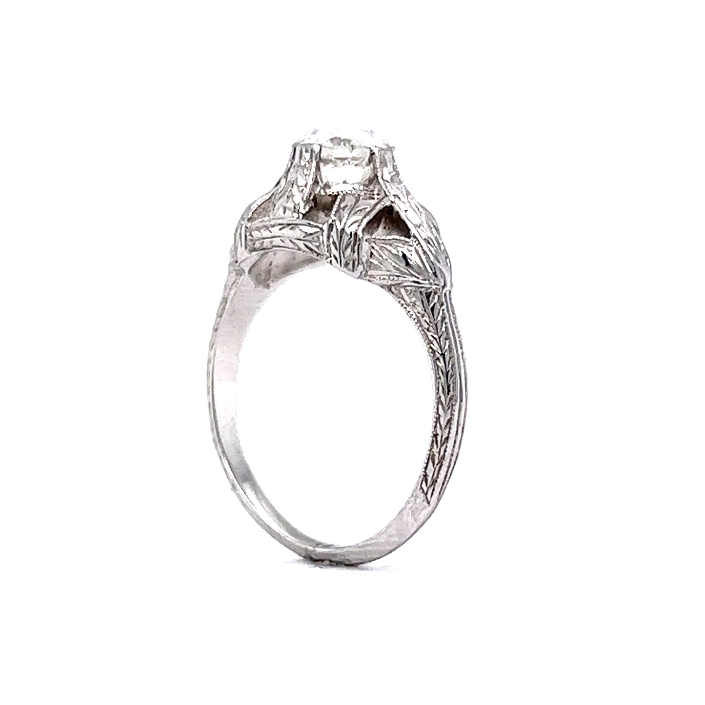 .62 Engraved Antique Engagement Ring Art Deco Diamond