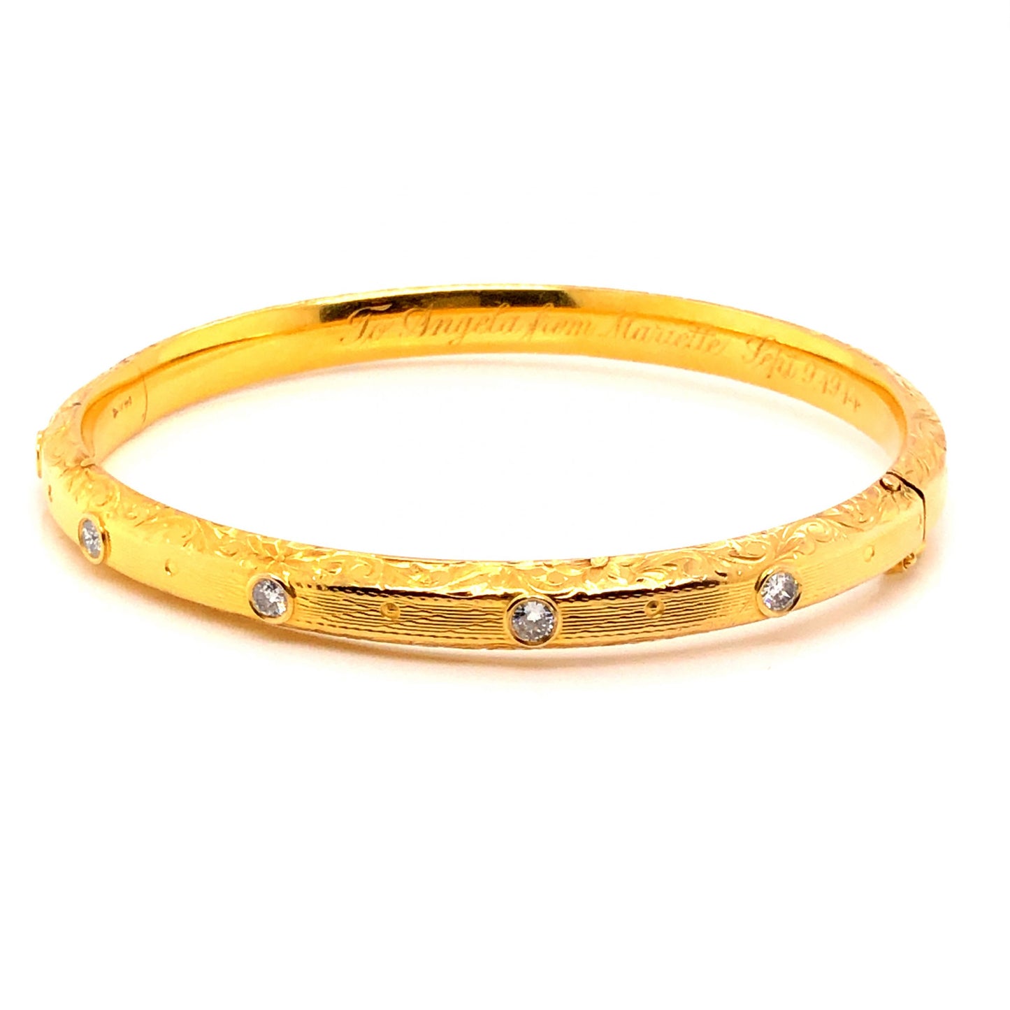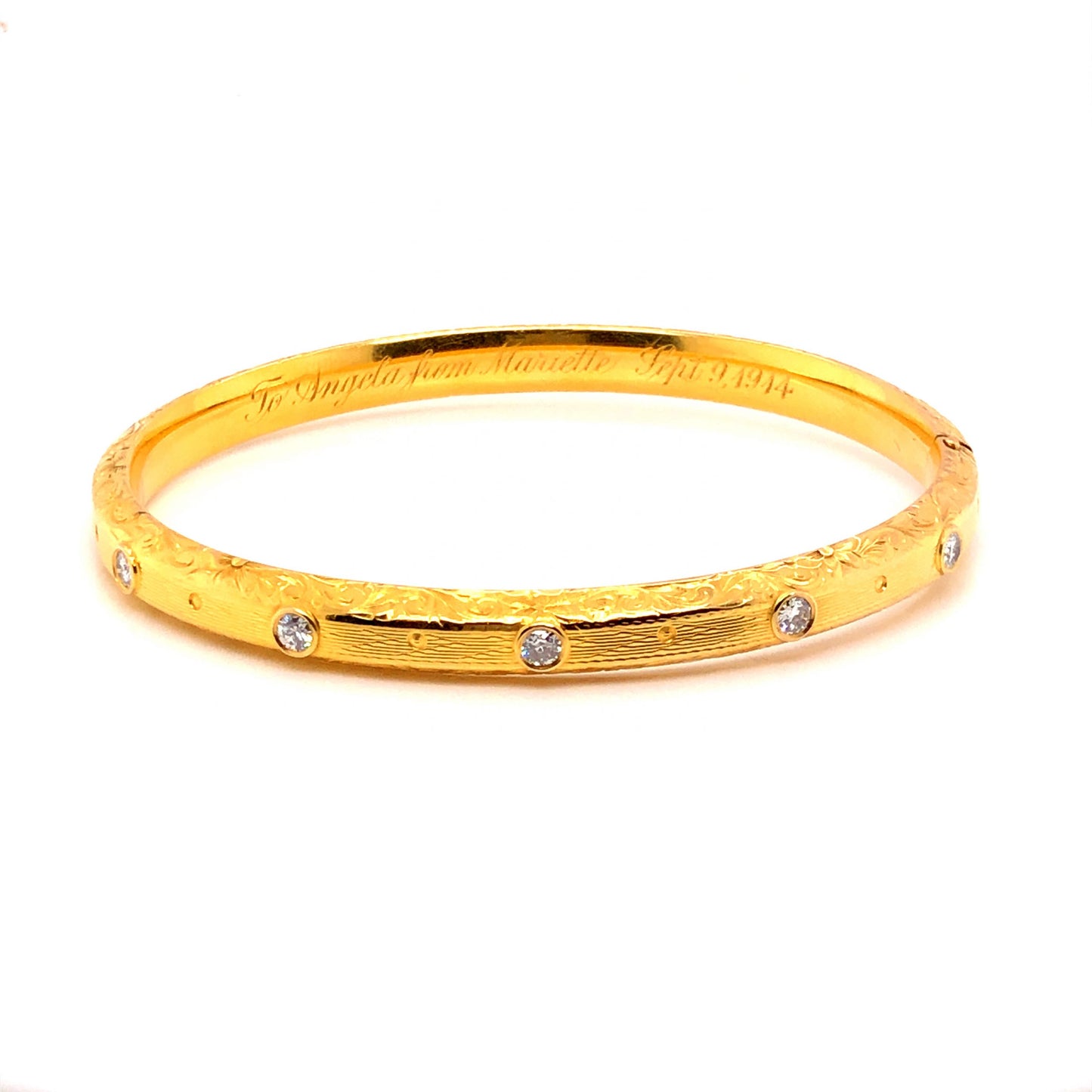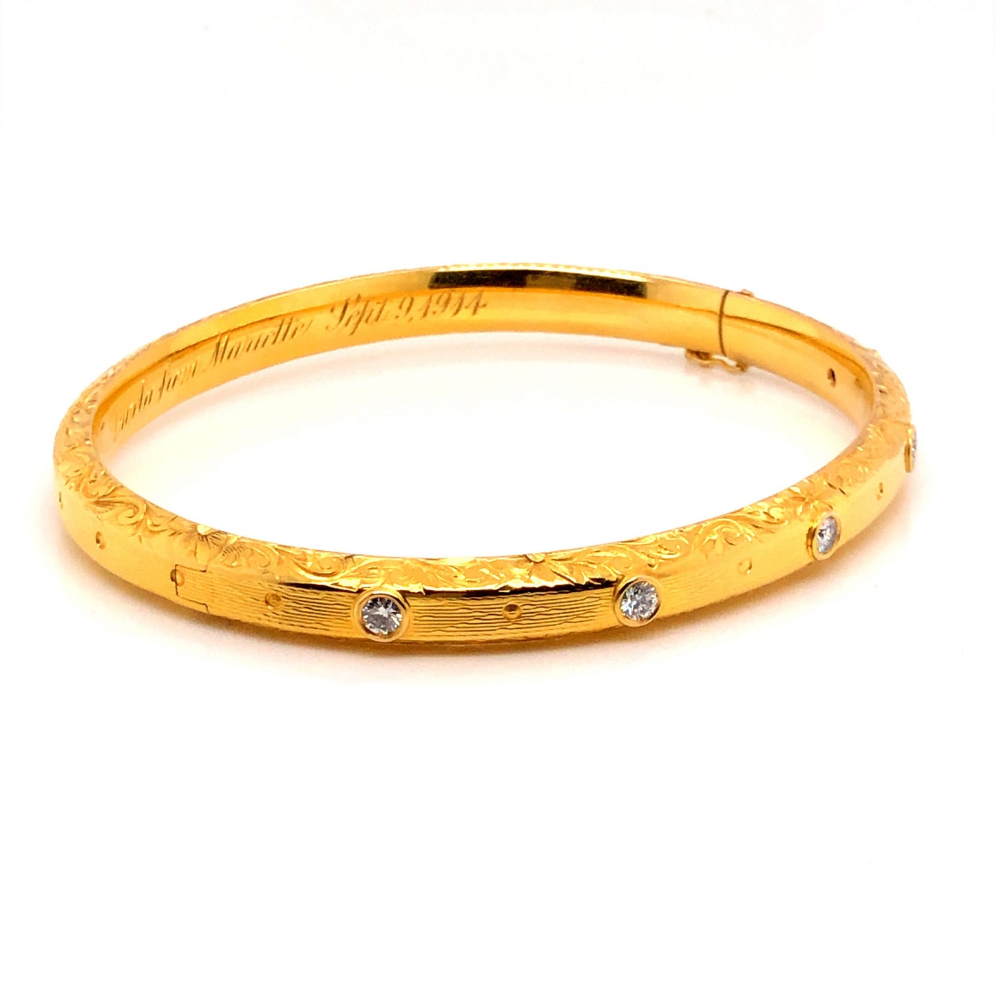 Engraved Victorian Diamond Bangle Bracelet in 14k Yellow Gold