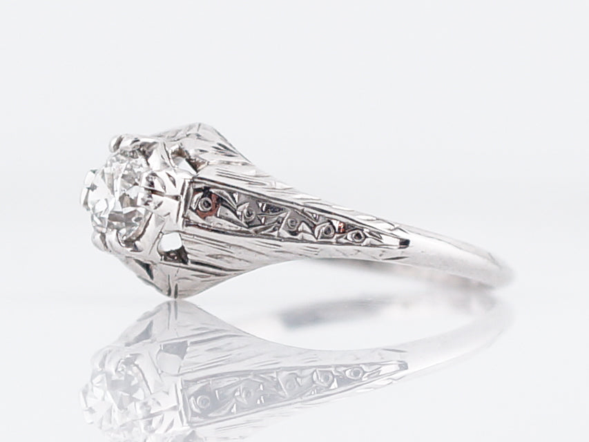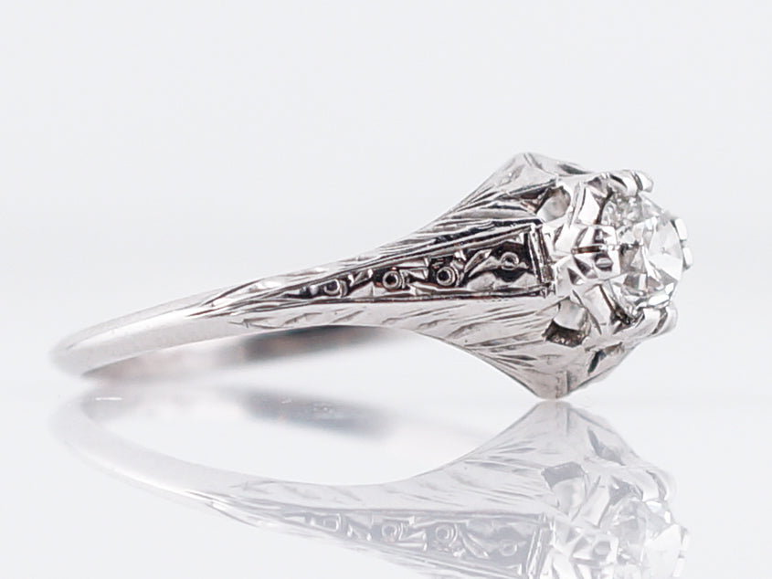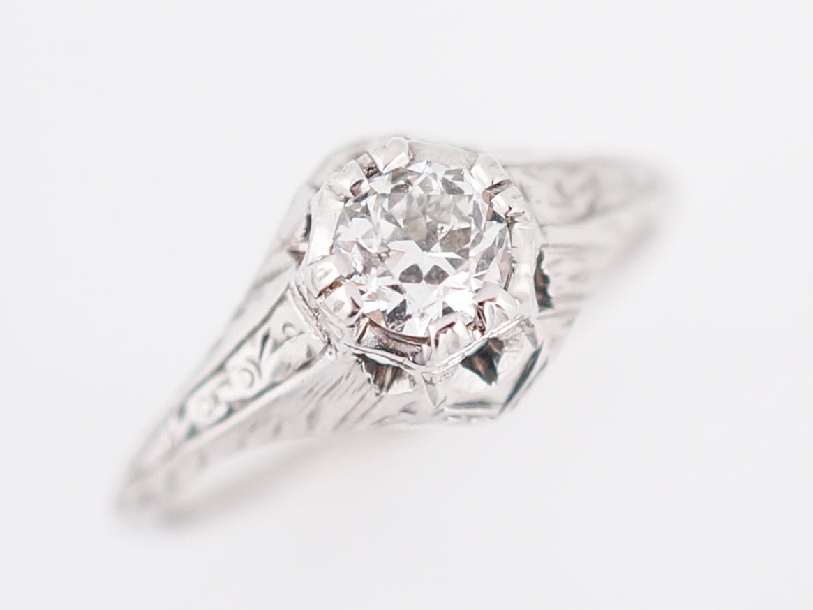 Engraved Vintage Filigree Old Euro Diamond Ring Art Deco
