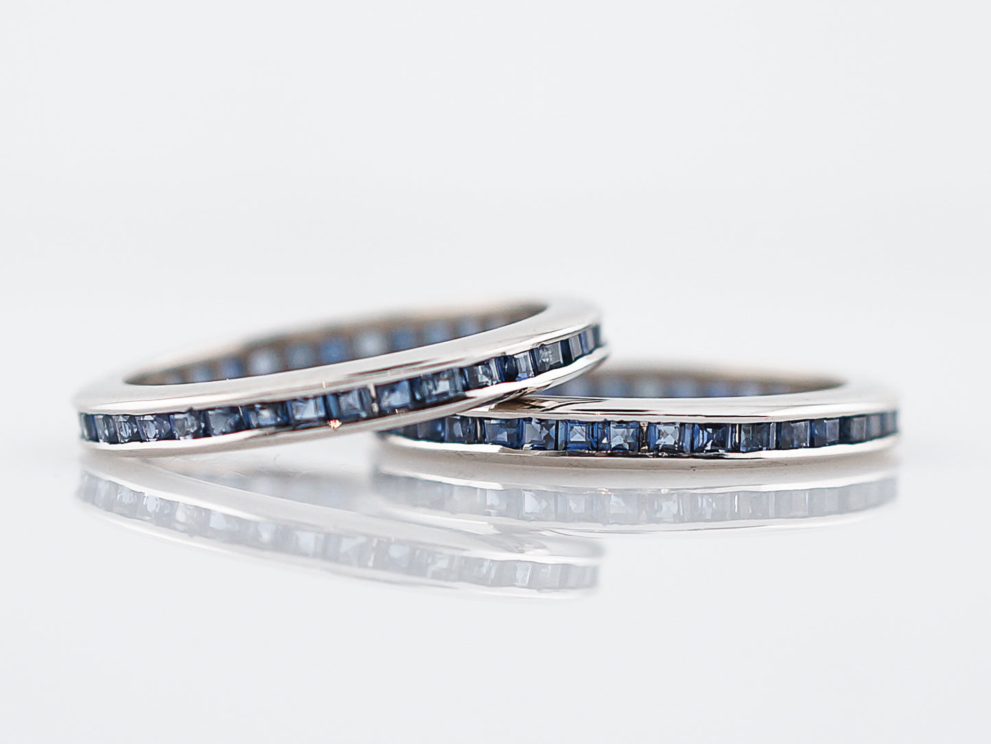Eternity Wedding Band Modern 1.17 Square Cut Sapphire in 14k White Gold