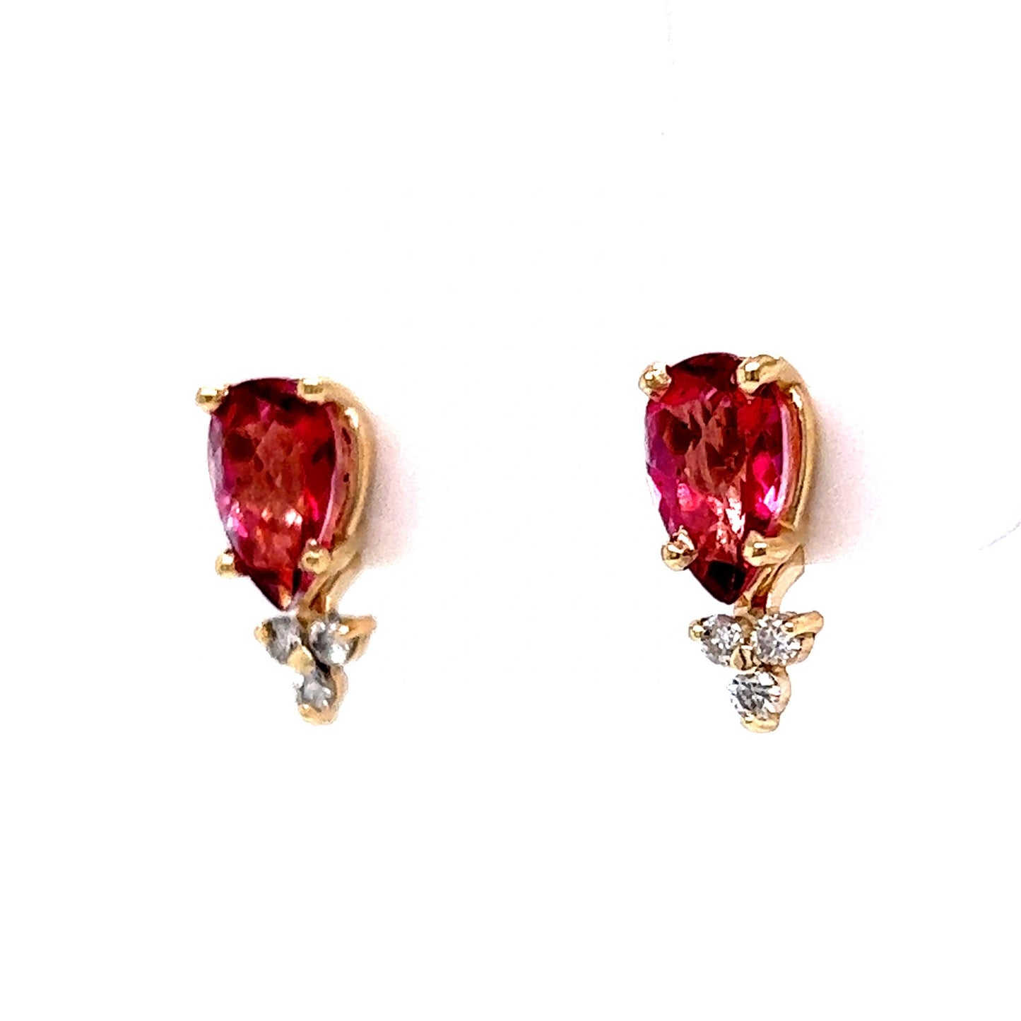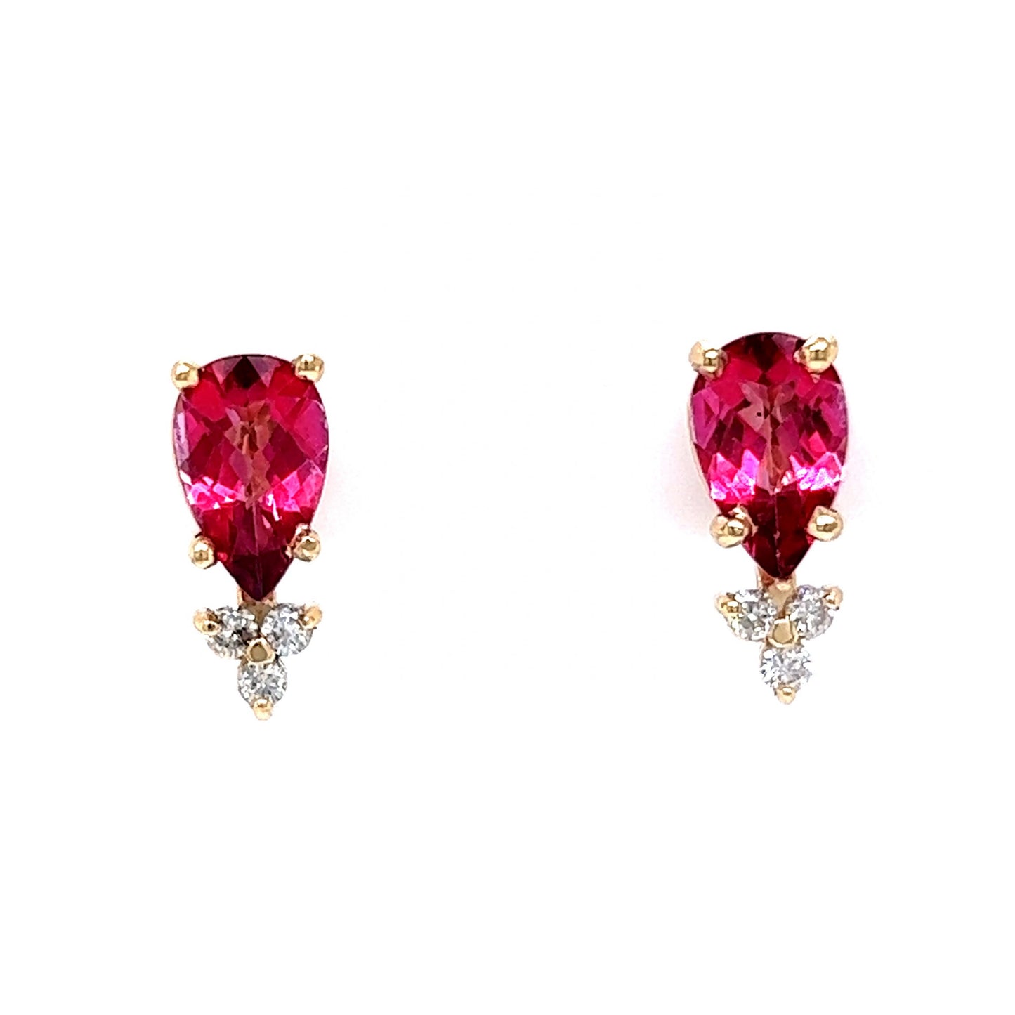 Faceted Pink Tourmaline & Diamond Earrings in 14k Yellow Gold