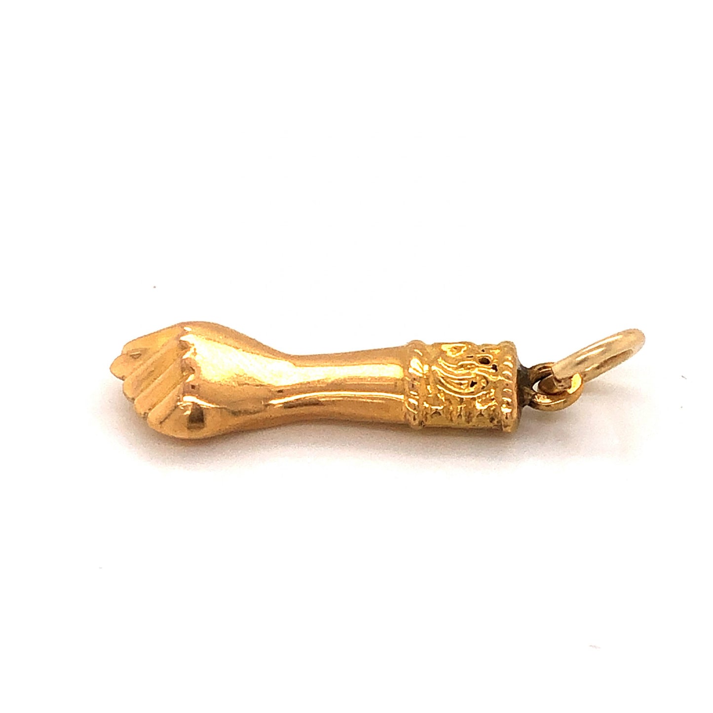 A good luck charm inspired by the pendants from ancient Etruscan Italy, this modern figa pendant is finished in radiant 14 karat yellow gold. The hand is locked into a “fig” gesture with sleek engravings decorating the cuff link. Rich in culture and expertly design, this lovely pendant would make an unforgettable gift for any loved one!