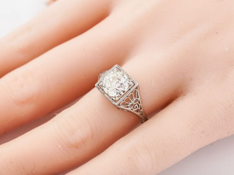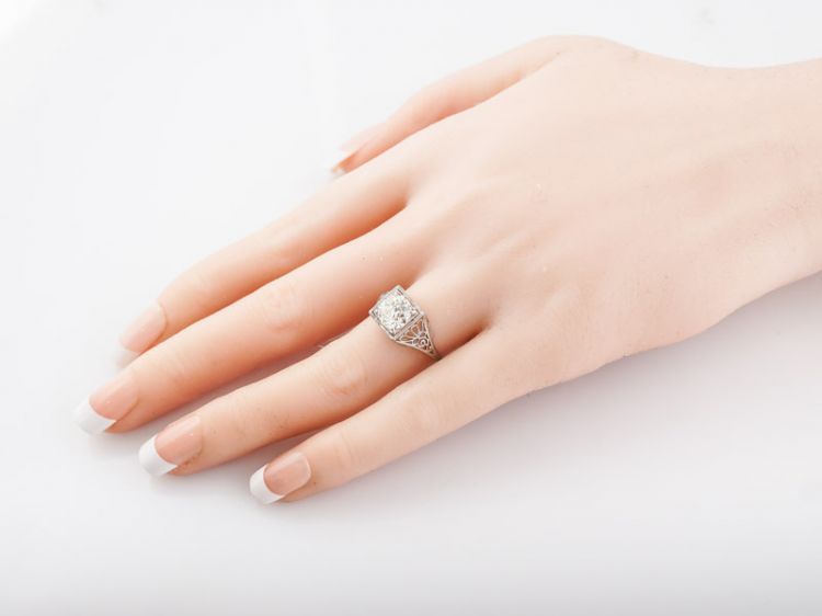 Filigree Diamond Engagement Ring Art Deco Platinum