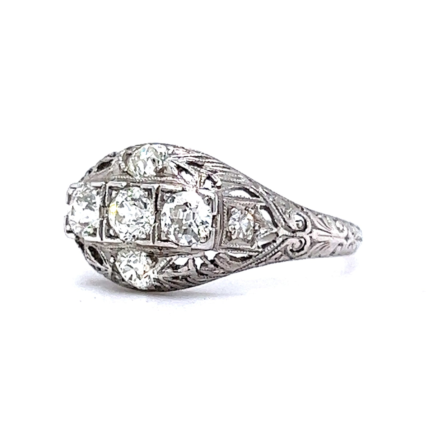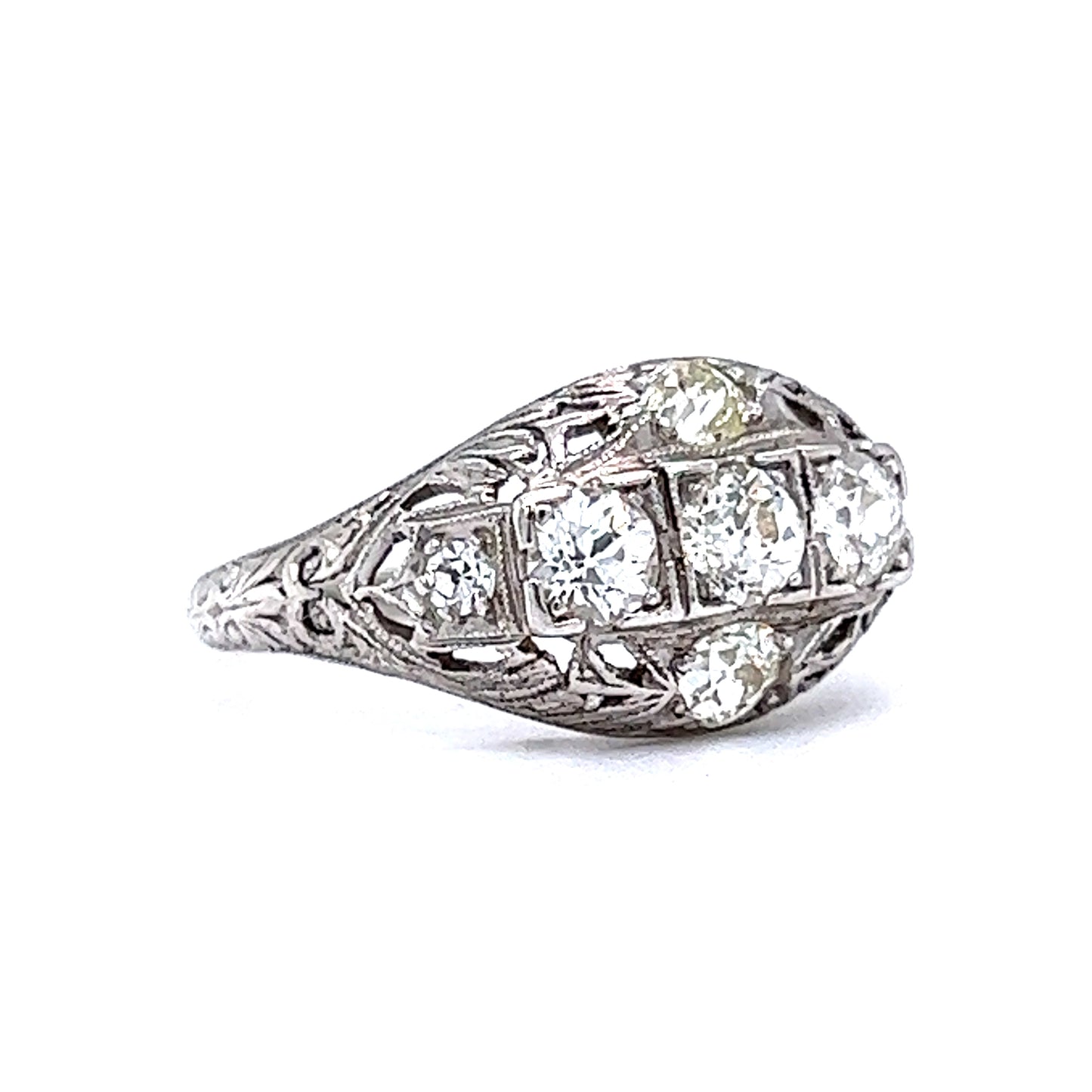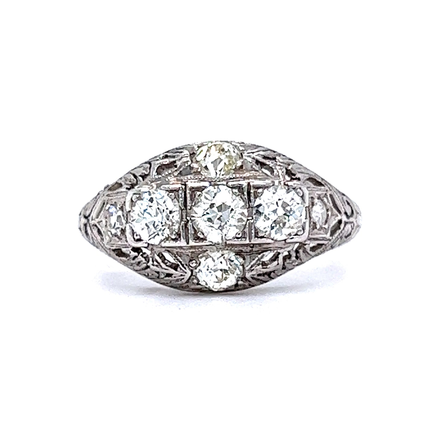 Filigree Five Stone Art Deco Diamond Ring in 18k