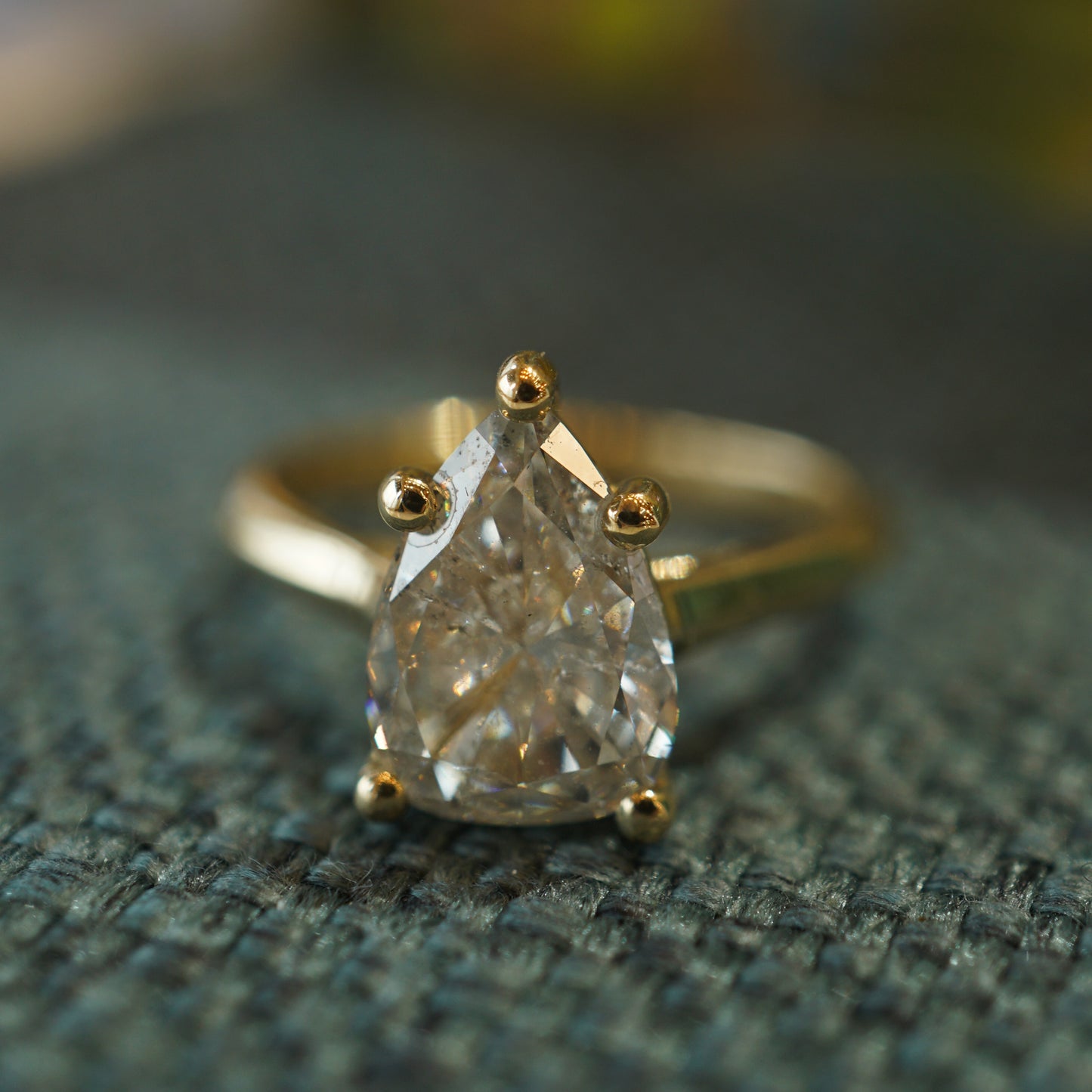 Five Prong Pear Diamond Engagement Ring in 14k Yellow Gold