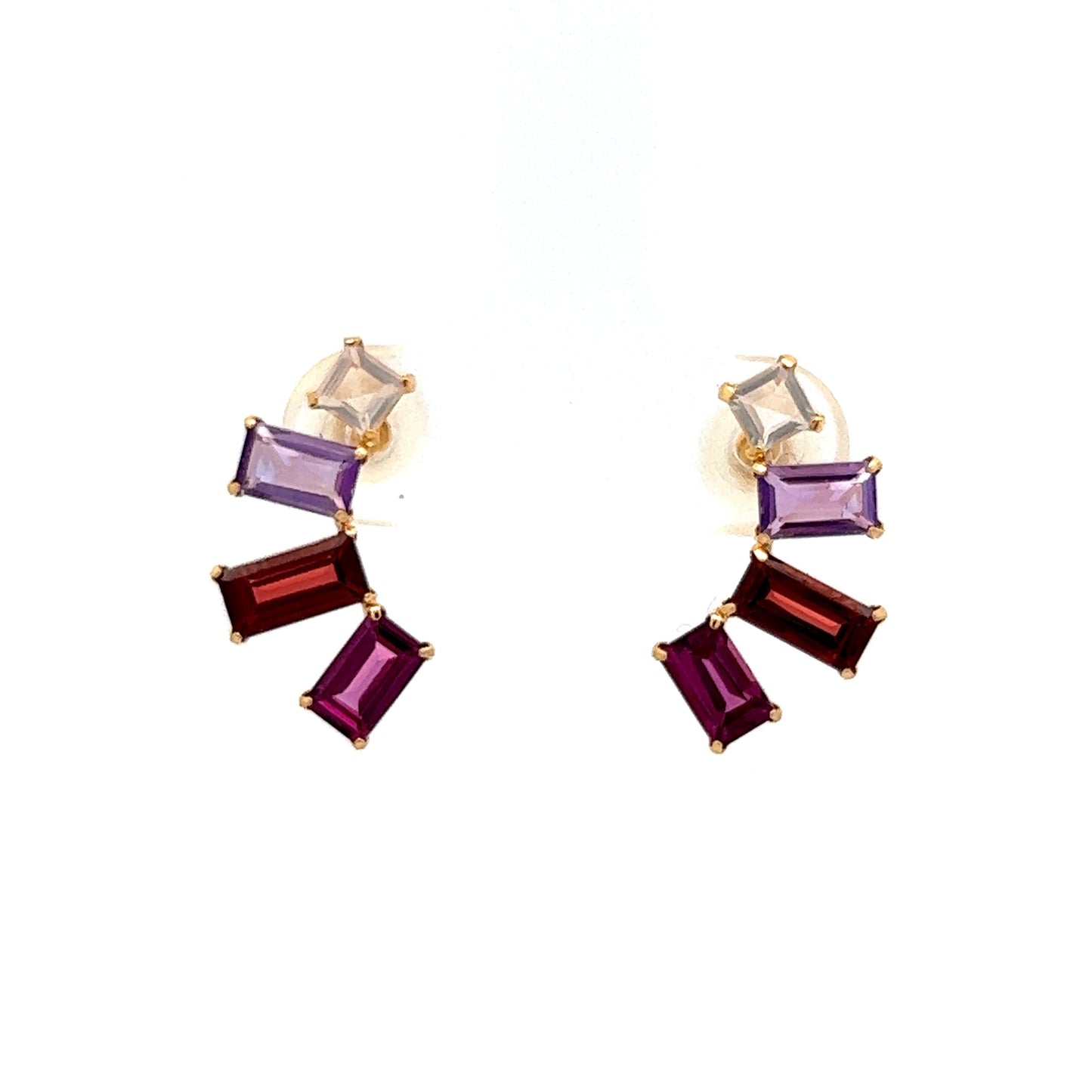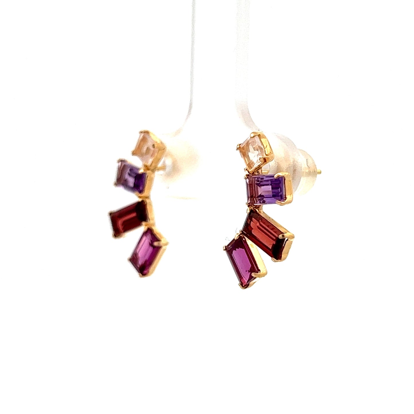 Garnet, Amethyst & Tourmaline Stud Earrings in 18k
