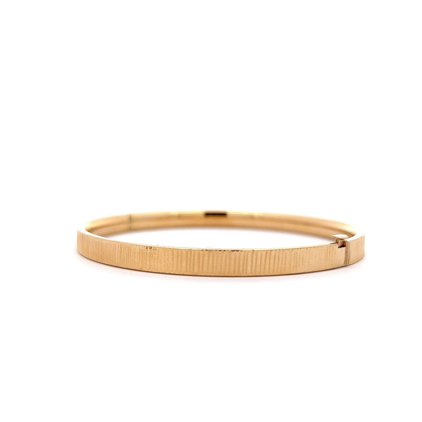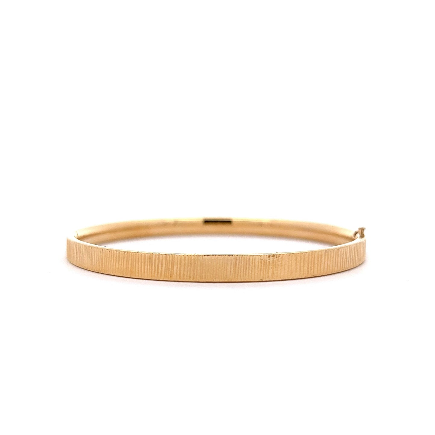 The perfect bangle that everyone should have in their collection. Crafted with 14 karat yellow gold, this textured gold bracelet will bring a touch of sophistication to your look. Its modern yet timeless design makes it the perfect piece for day-time or night-time events.