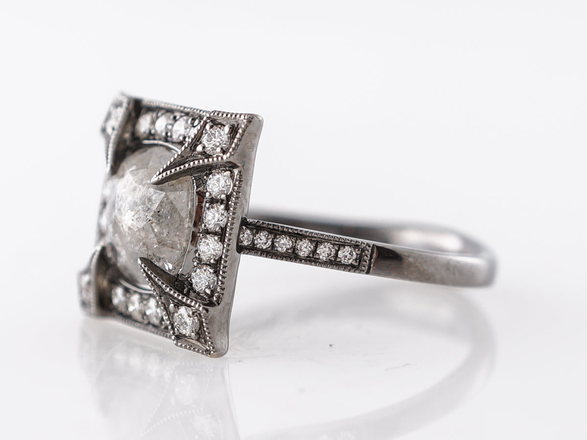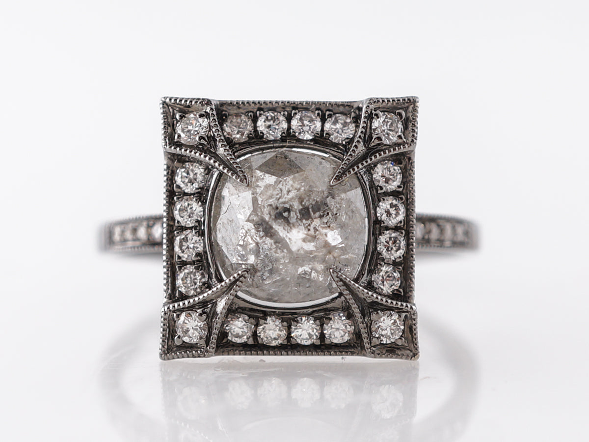 Gray Rose Cut Diamond Ring in 18 Karat White Gold