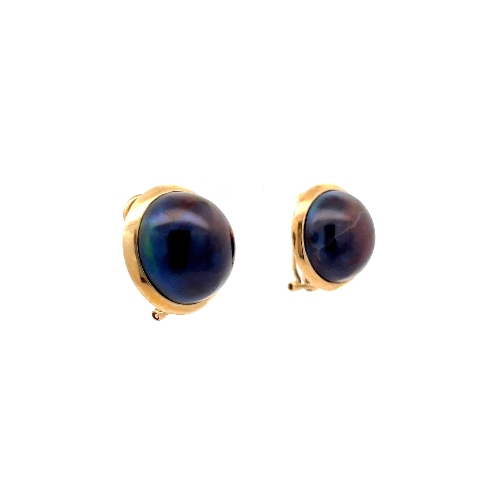 Grey Mabe Pearl Stud Earrings in 14k Yellow Gold